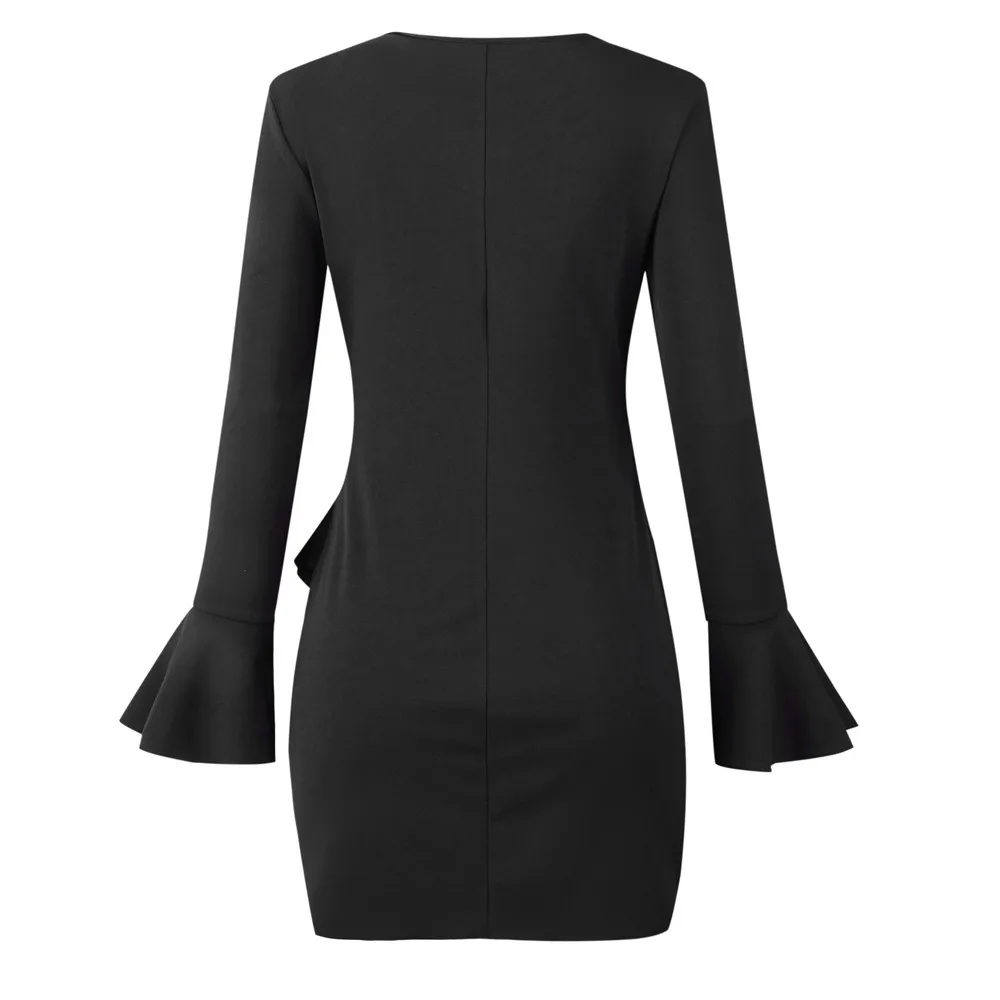 FeiTong Long Sleeves ruffles dress Women elegant basic winter dress 2018 autumn vestidos Bodycon sexy dress high street