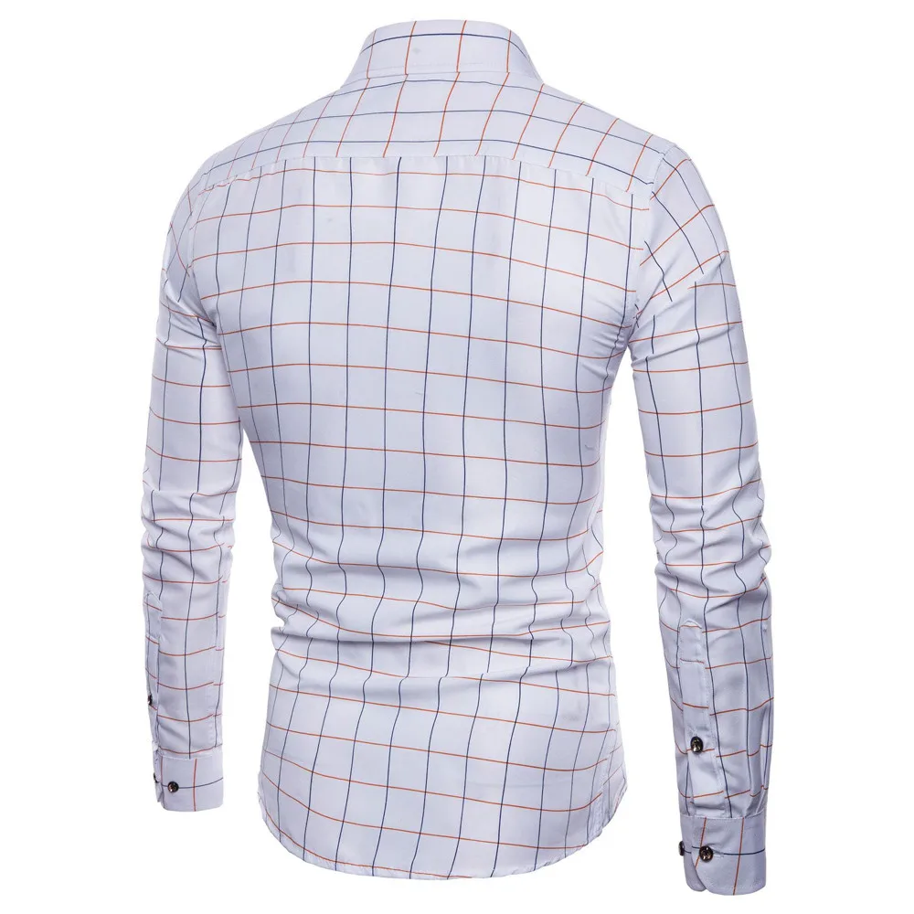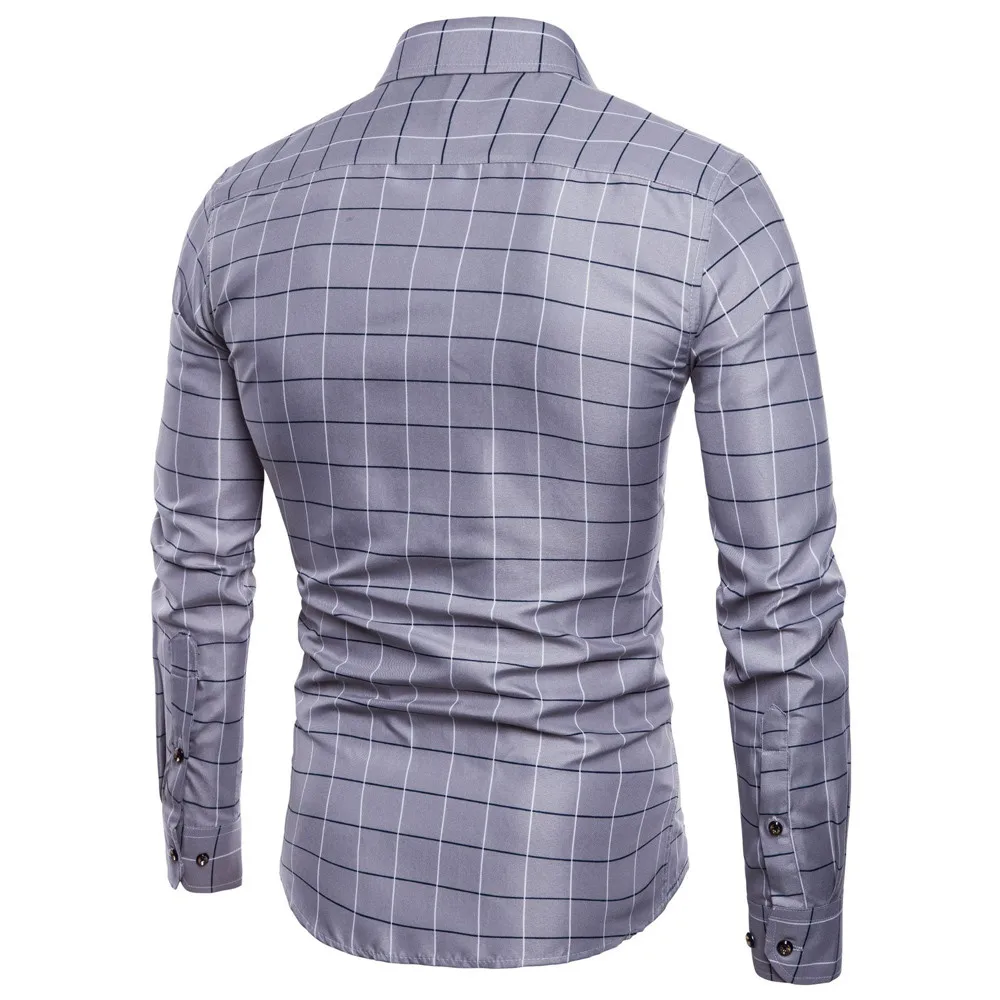 FeiTong Men long sleeve shirt Mens Long Sleeve Oxford Formal Casual Plaid Slim Fit Tee Dress Shirts Top male shirt chemise homme