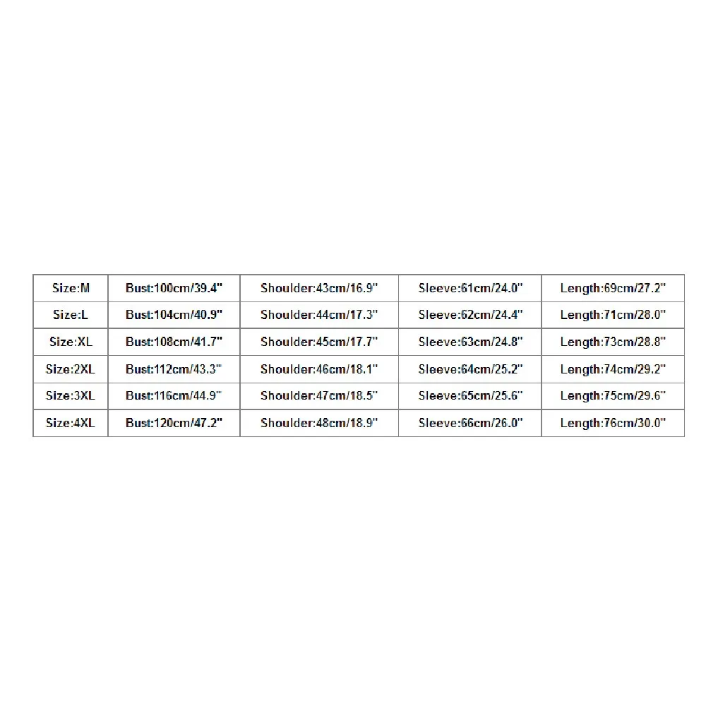 Size Bust Shoulder Sleeve Length