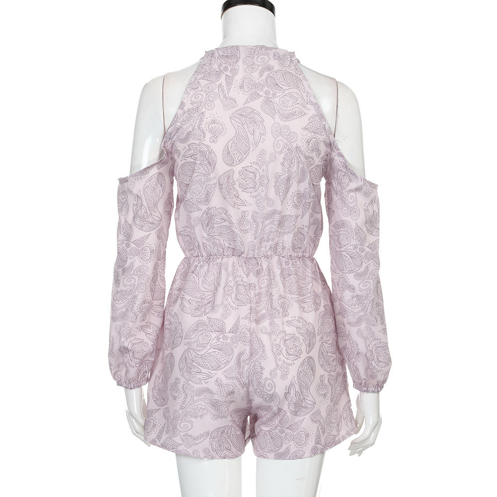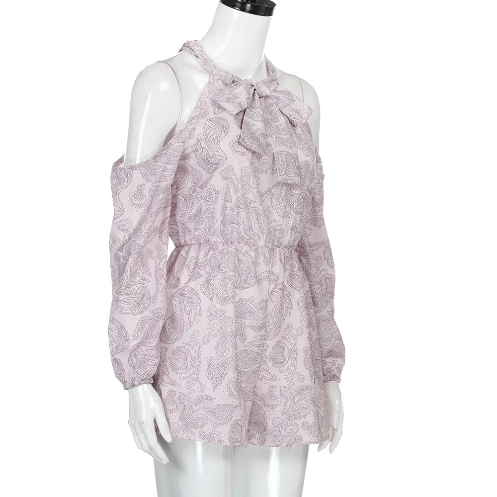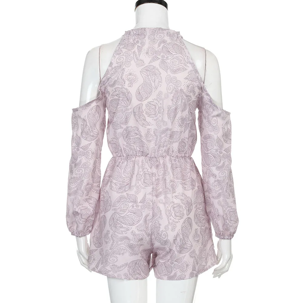 Women Long Sleeve Floral Print Playsuit Causal Jumpsuit