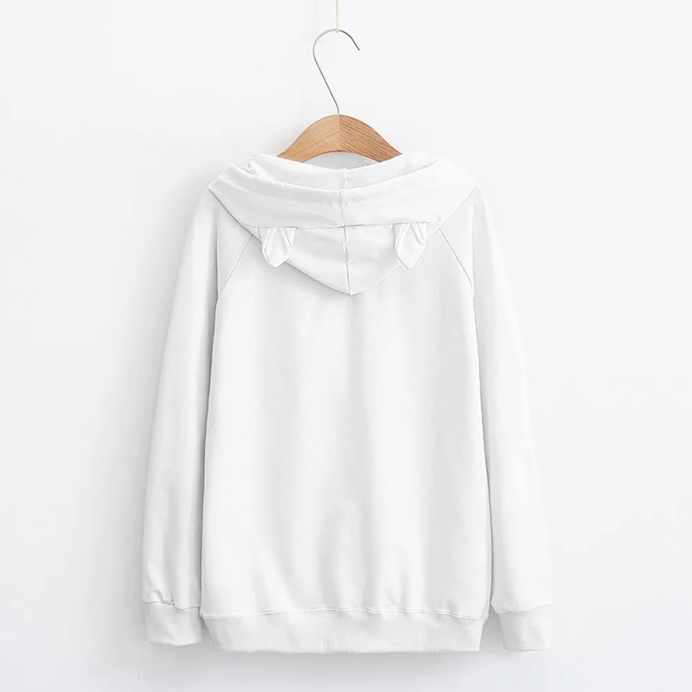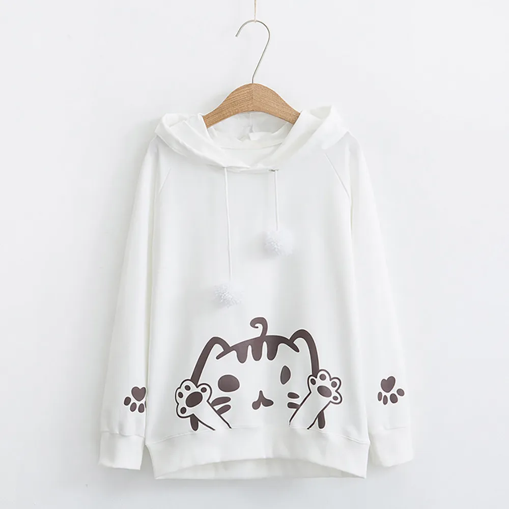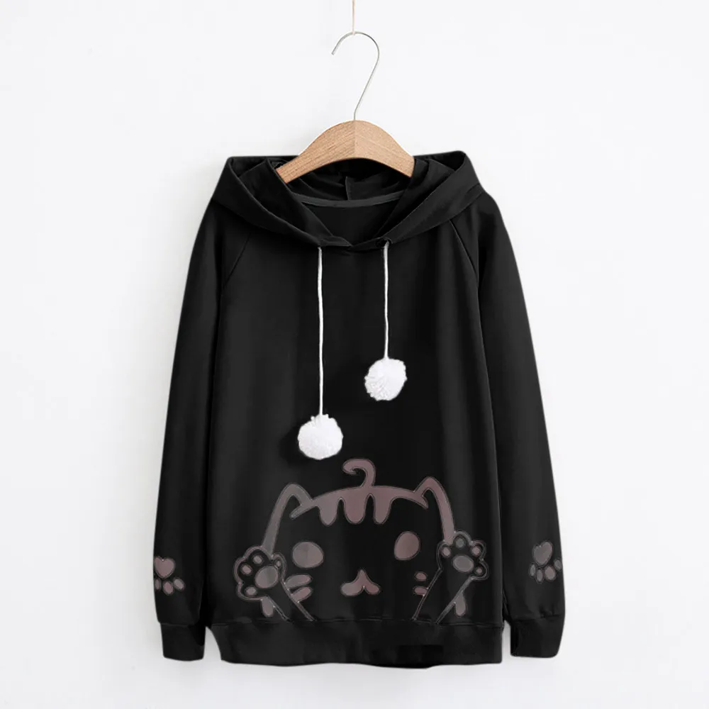 Women’s Casual Autumn Long sleeve Hooded Cat print Hairball Sweatshirt