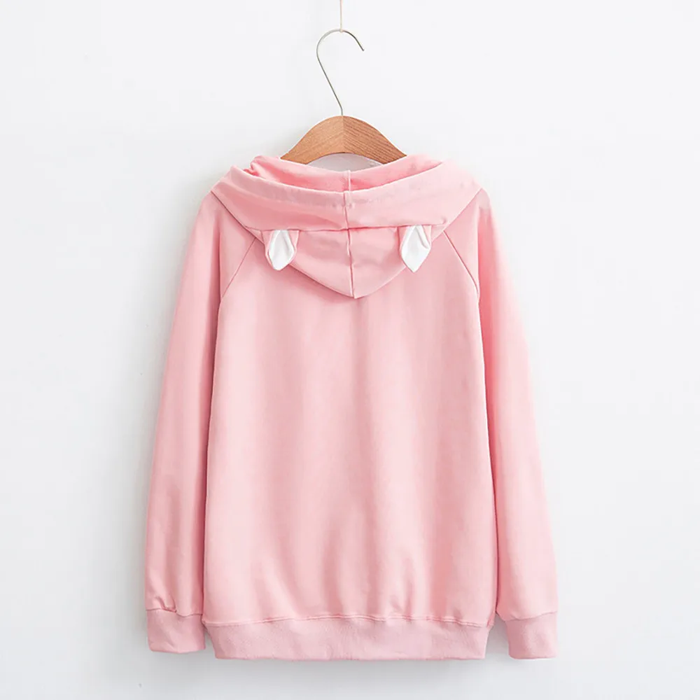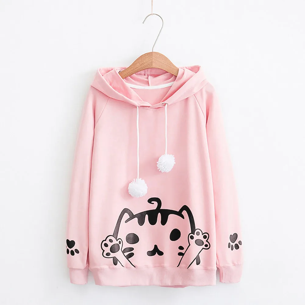 FeiTong Pink Sweatshirt Animated Cartoon Drawstring Hoodie Pullovers Fall Casual Women Clothing Long Sleeve Cute Cat Sweatshirts