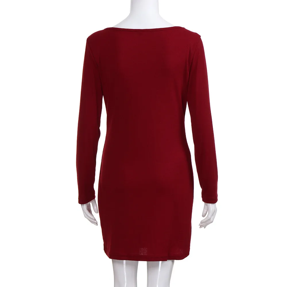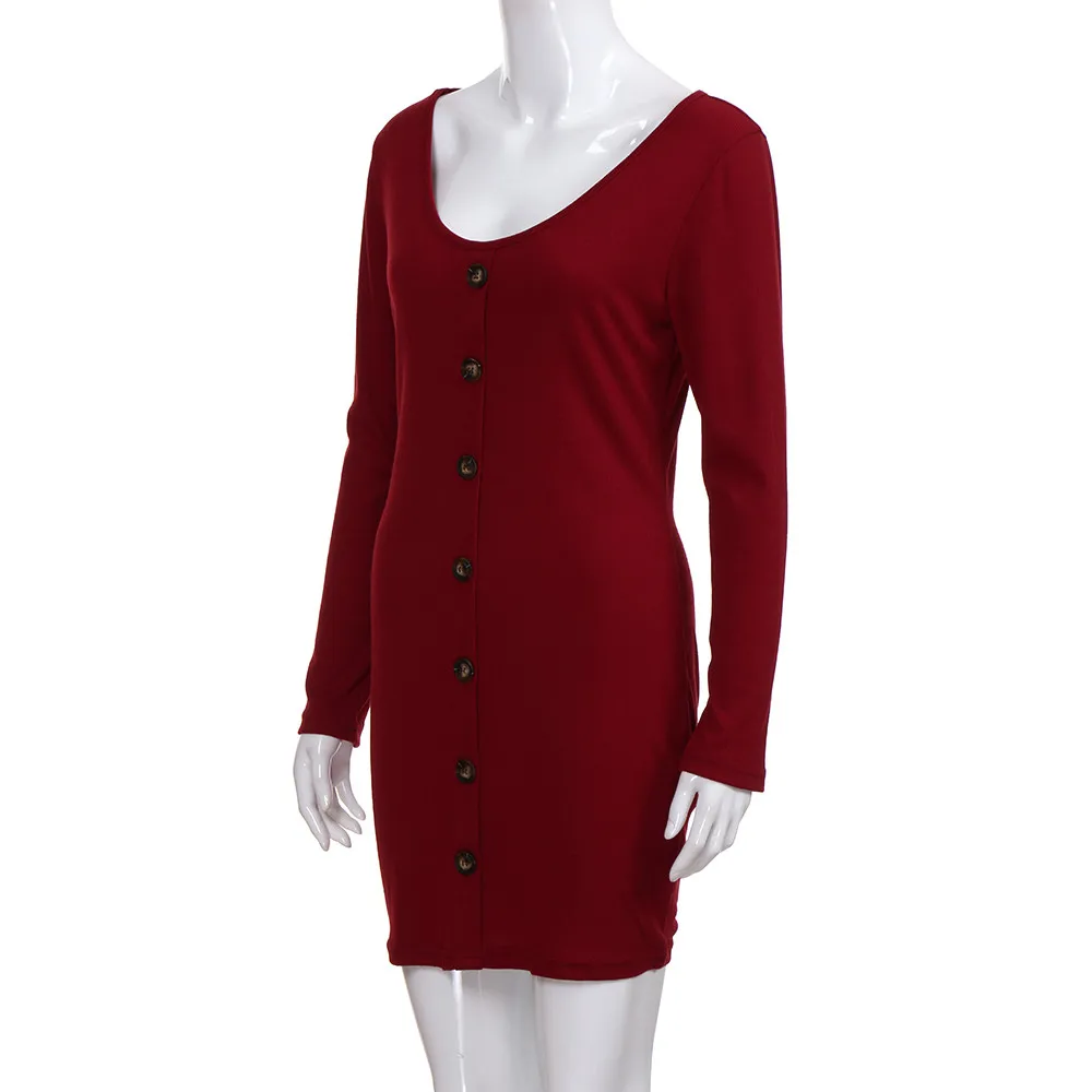 Womens Solid Button Casual Long Sleeve Evening Party Tank Short Mini Dress