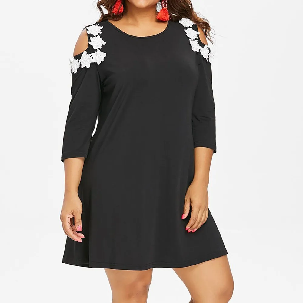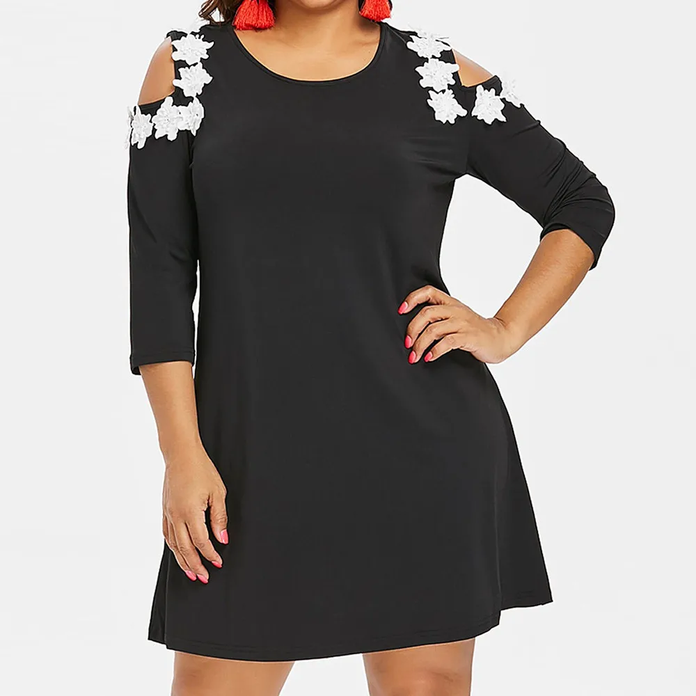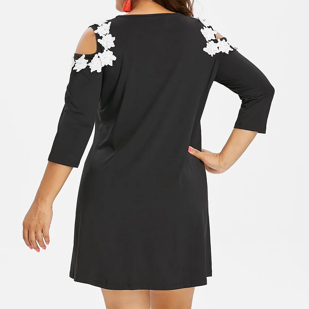 Women Plus Size Solid Applique Strapless Three Quarter Sleeve Mini Dress
