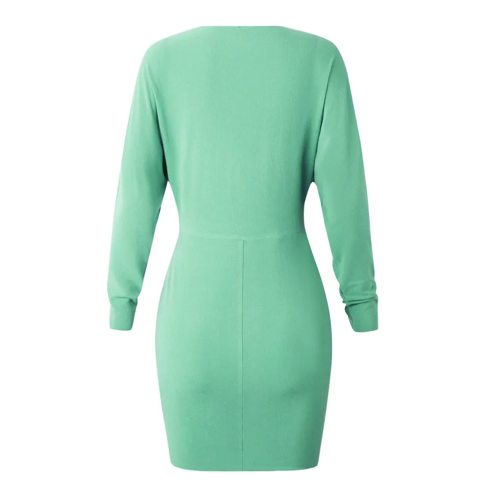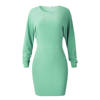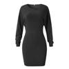 Fashion Womens Sexy Solid O-Neck Long Sleeve Pullove Bodycon Slim Mini Dress