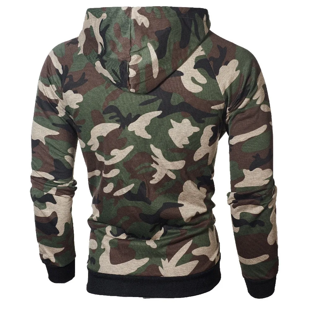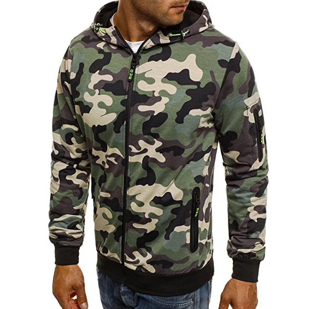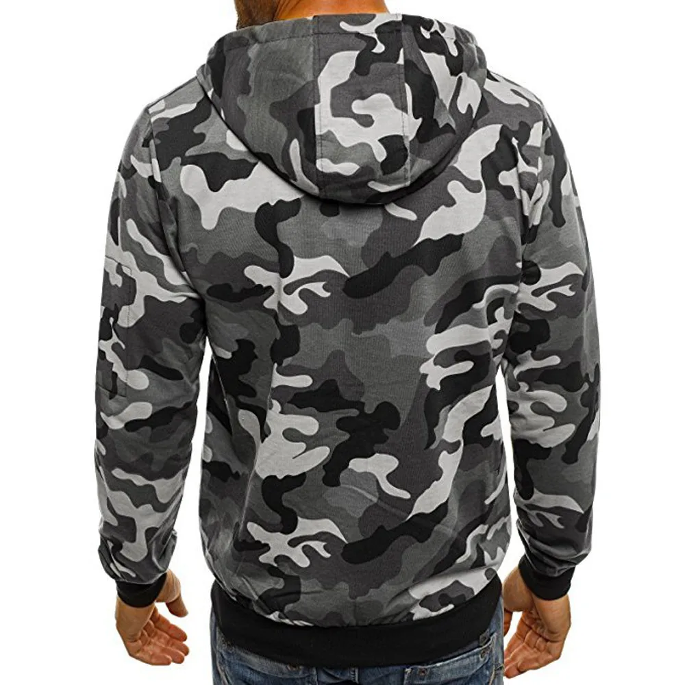 FeiTong Sweatshirts Mens Camouflage Zipper Pullover Casual Male Drawstring Pocket Long Sleeve Hooded Sweatshirt Pullover Hoodie