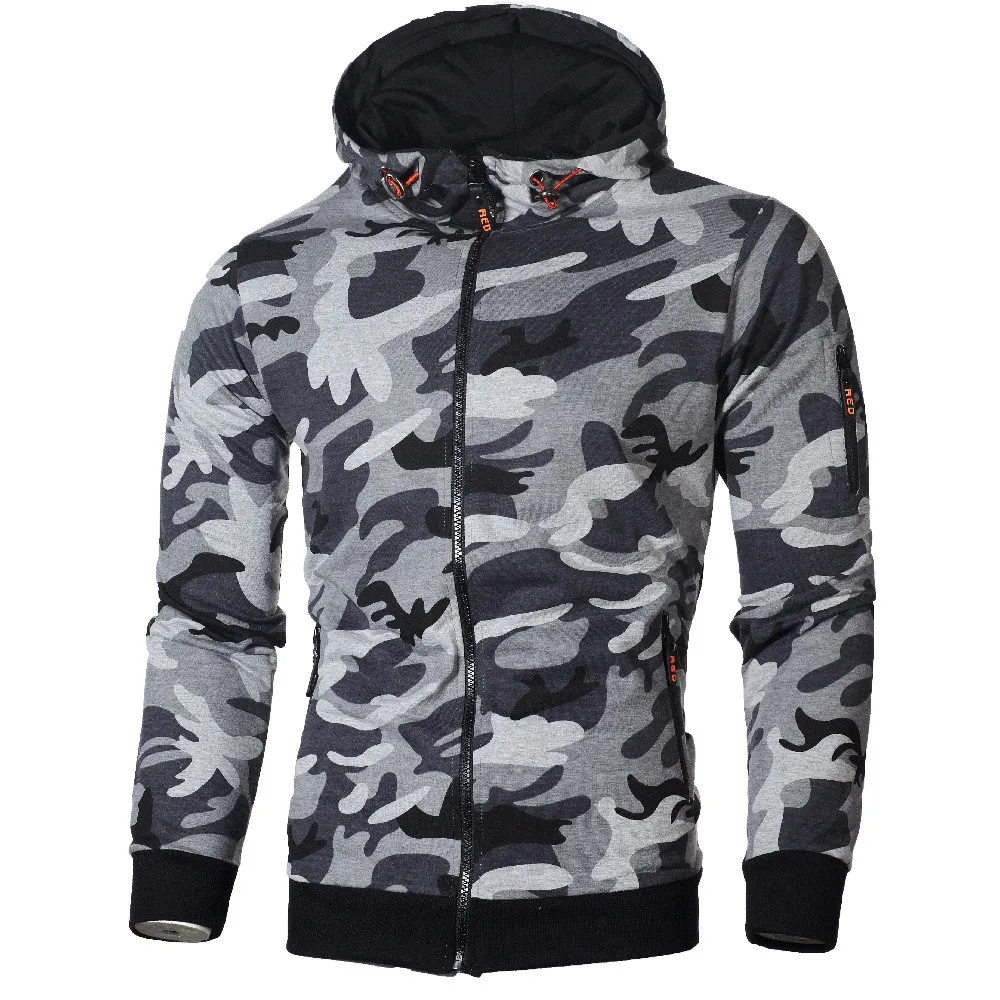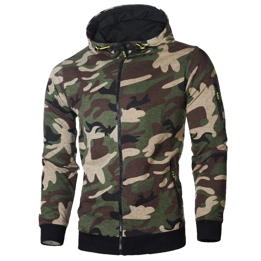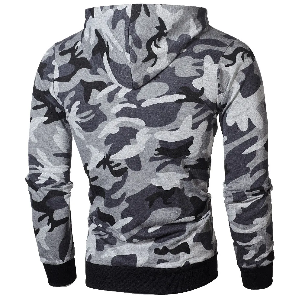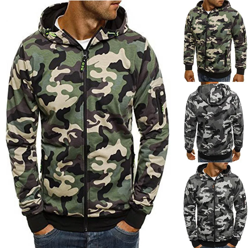 FeiTong Sweatshirts Mens Camouflage Zipper Pullover Casual Male Drawstring Pocket Long Sleeve Hooded Sweatshirt Pullover Hoodie