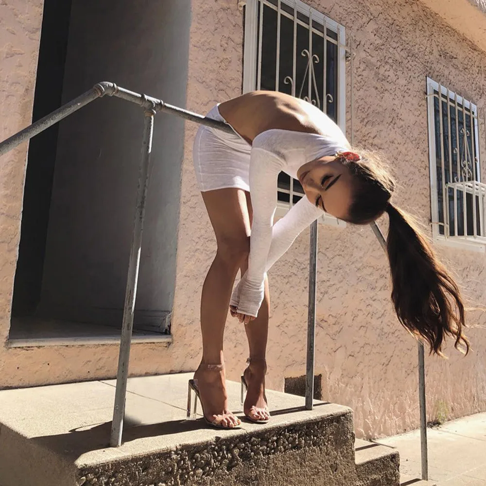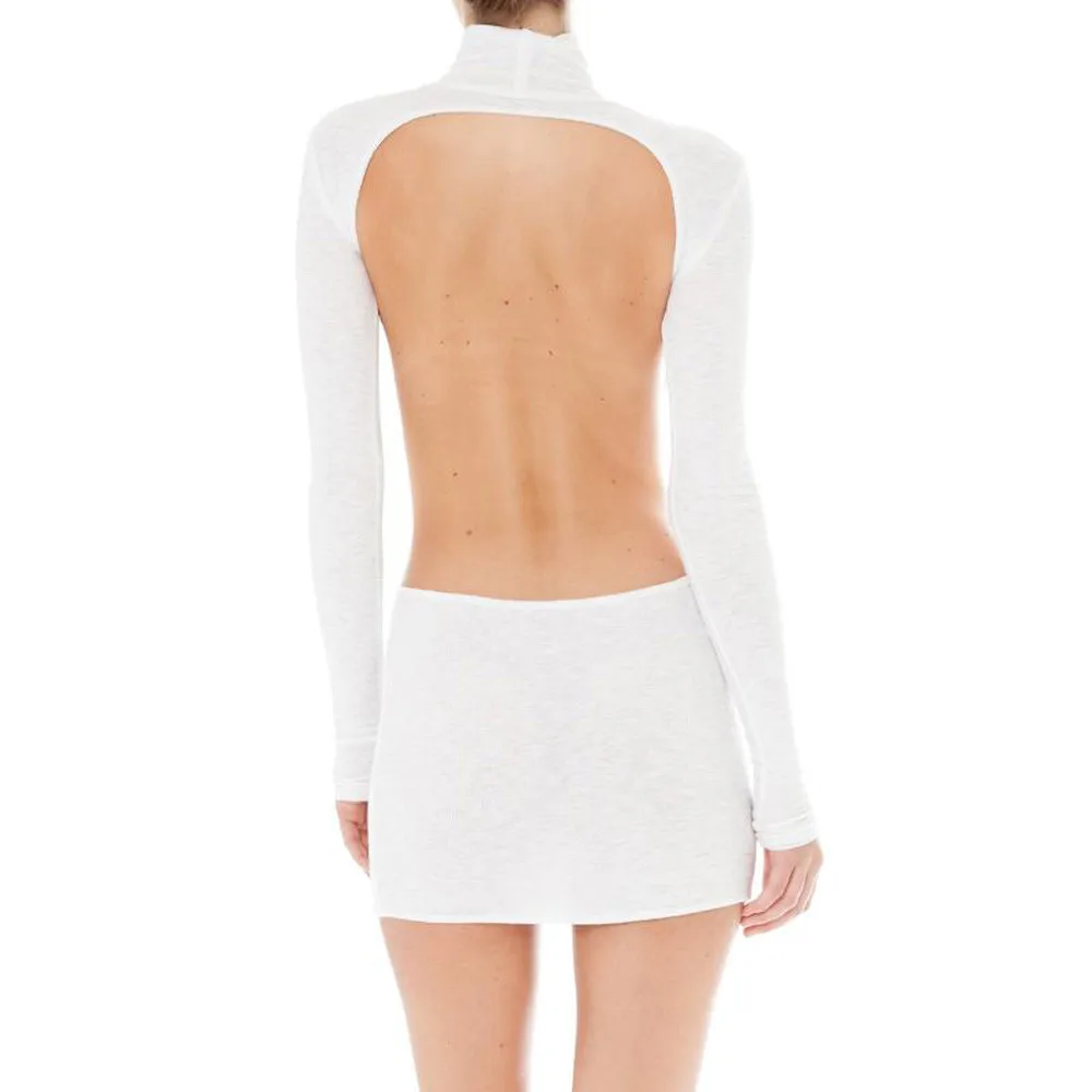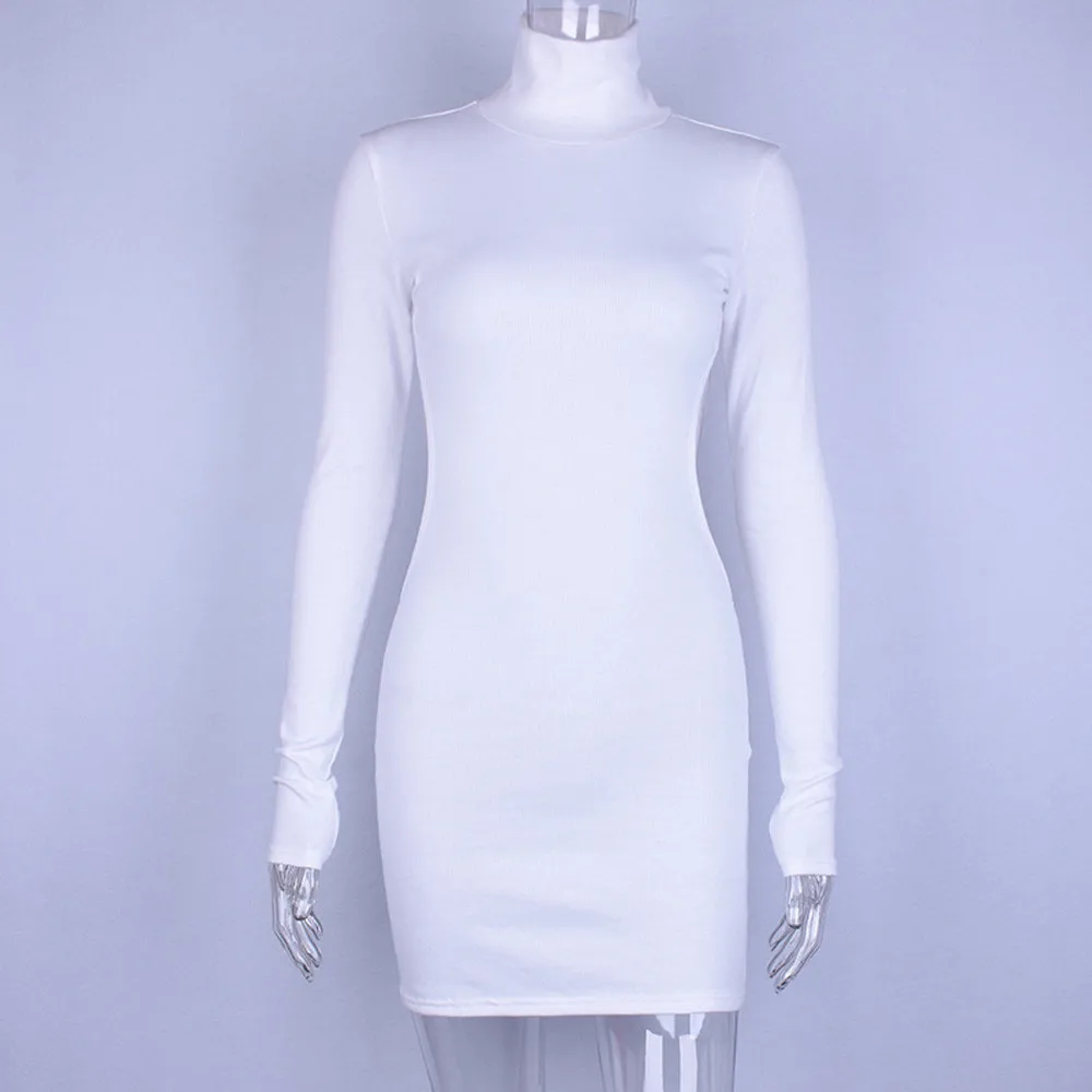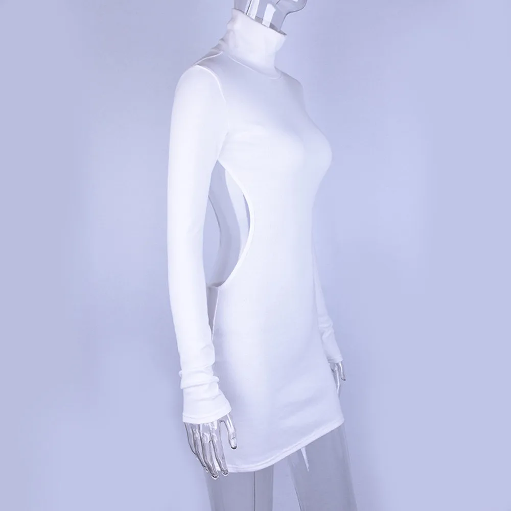 FeiTong Turtleneck white knitted sweater dress Cut out long sleeve dress Backless autumn winter dresses women 2018 casual