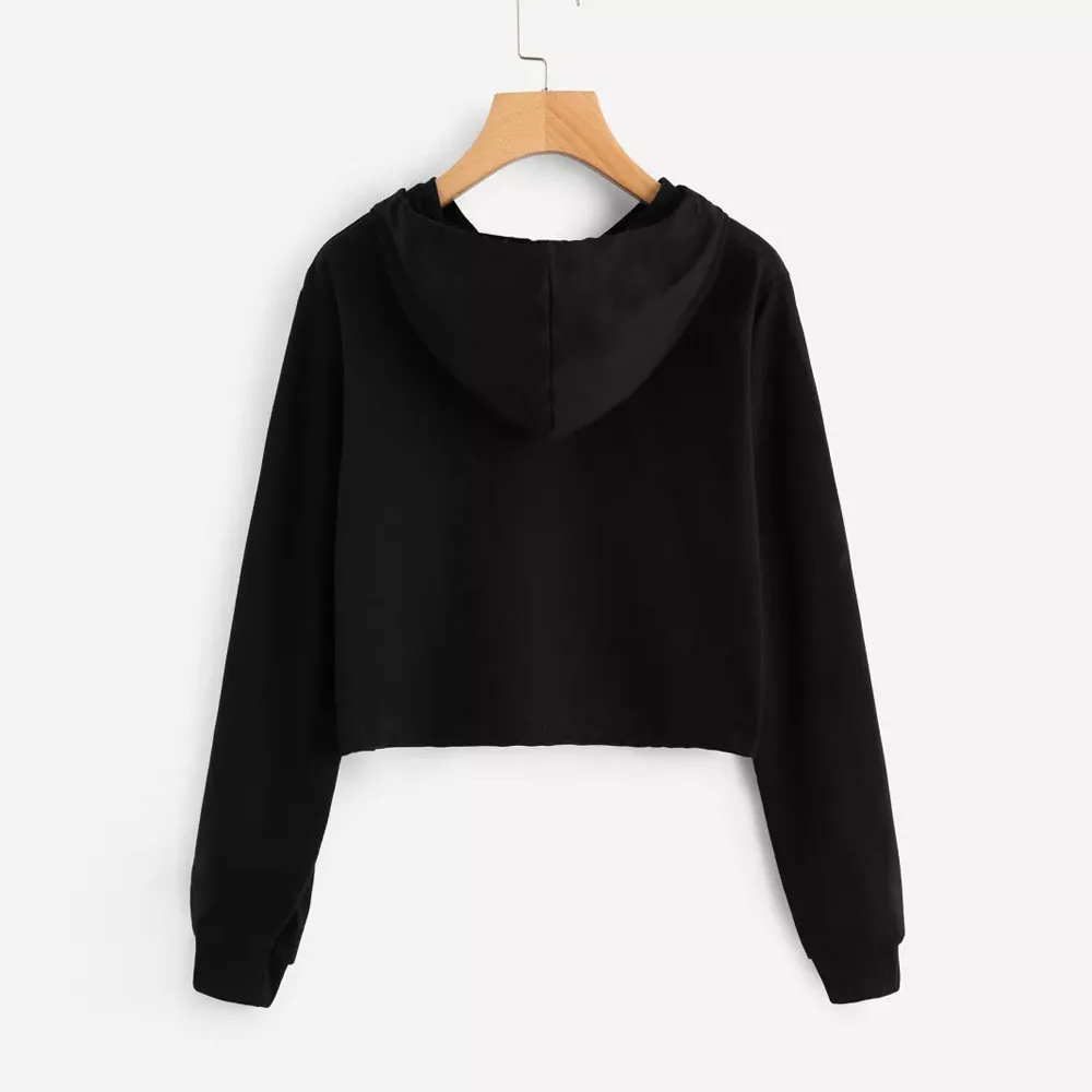 FeiTong Women sweatshirt Candy Crop Tops Moletom Feminino Long Sleeve Hoodie Pullover Top Blouse Basic Hoody Sweatshirt Female