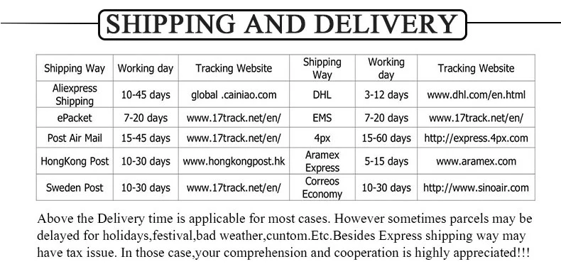 Packages from our warehouse in China will be shipped by ePacket or EMS depending on the weight and size of the product. Packages shipped from our US warehouse are shipped through USPS.