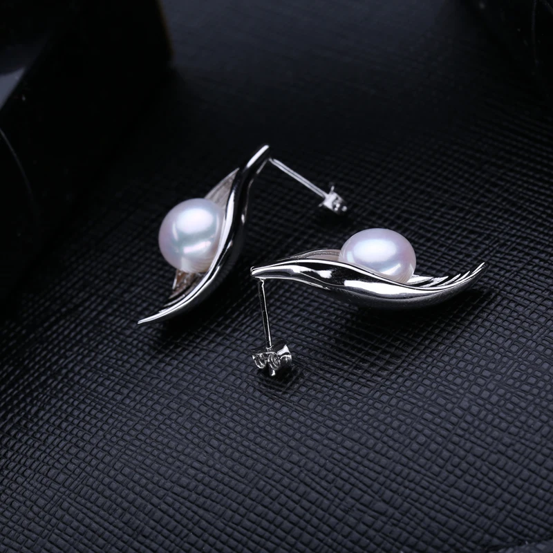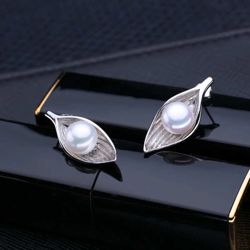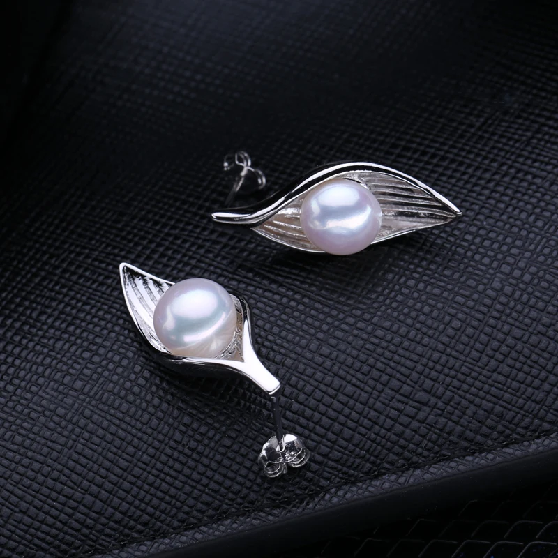 FENASY trendy leaf earrings pearl jewelry freshwater pearls earrings with s925 Sterling silver earrings for women girl gift