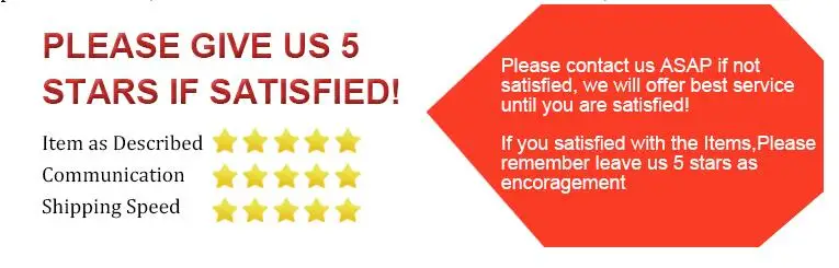 1. Please leave 5 star feedback if you’re satisfied with our products and service, we will appreciate it (Item as Described 5 stars, Communication 5 stars, Shipping time 5-stars).