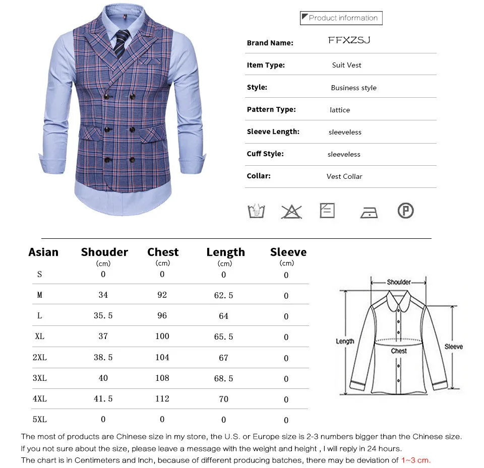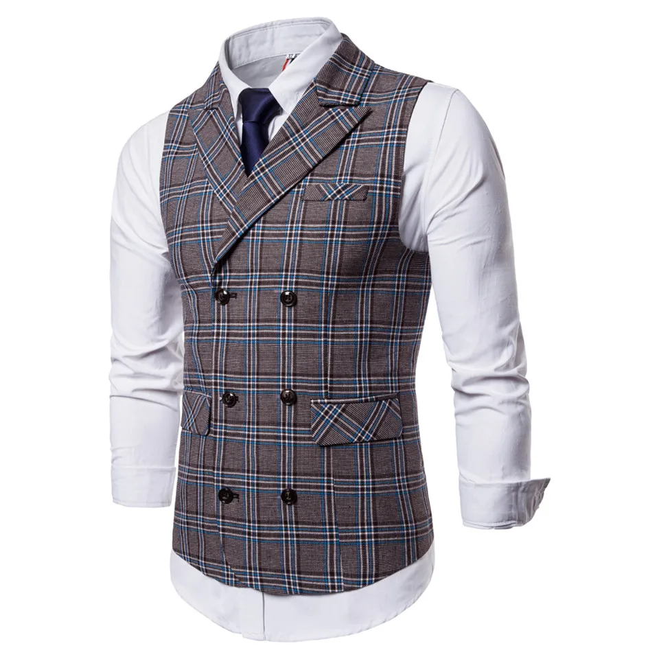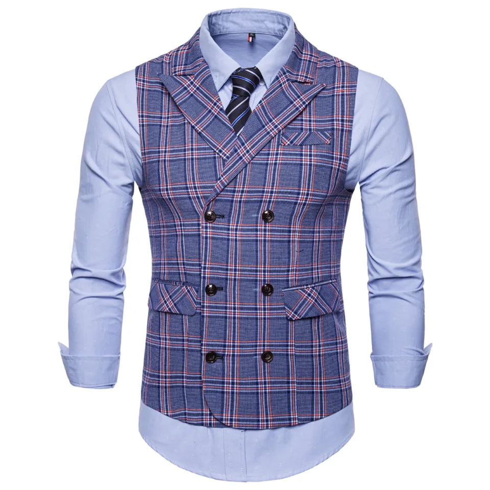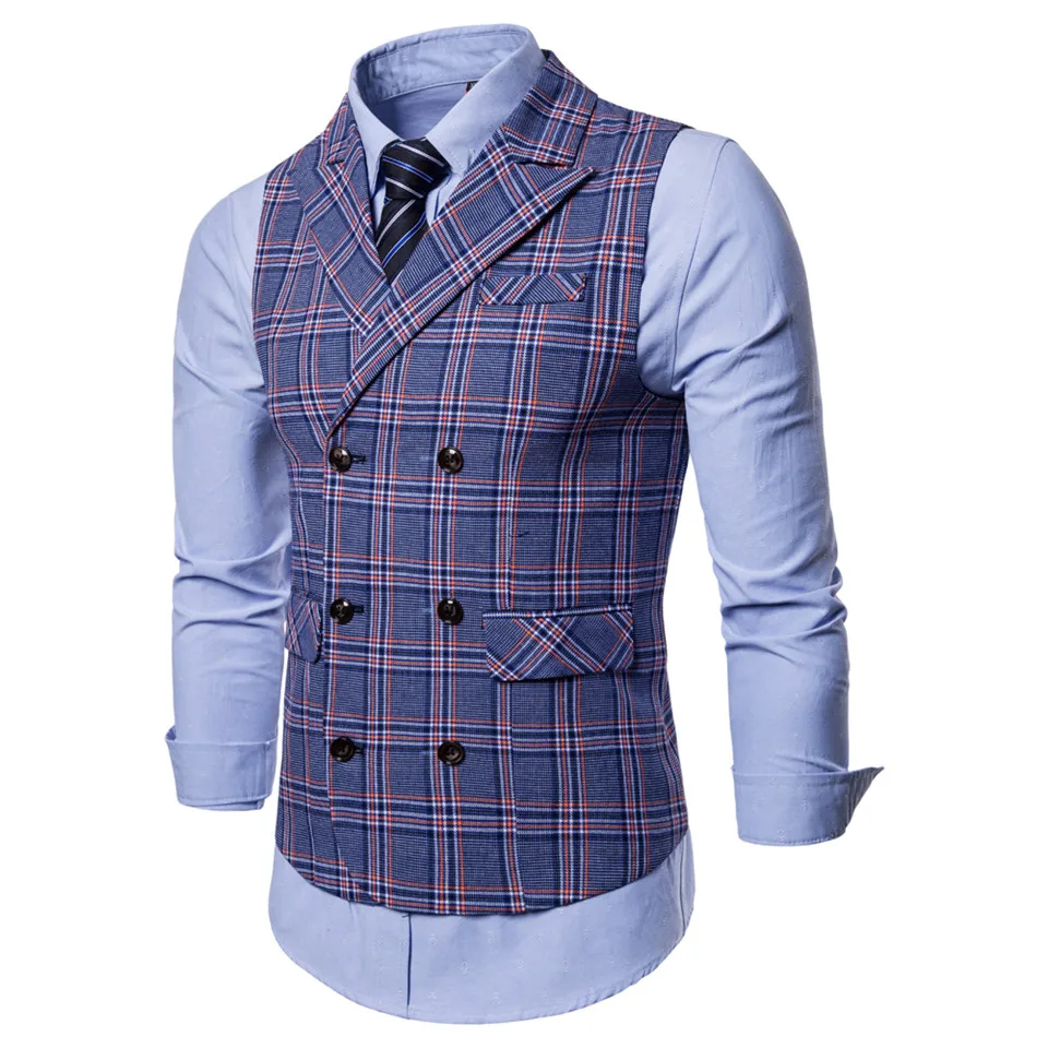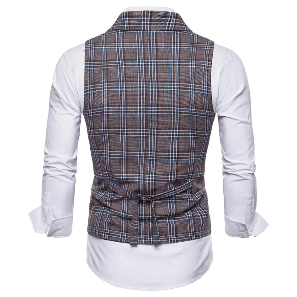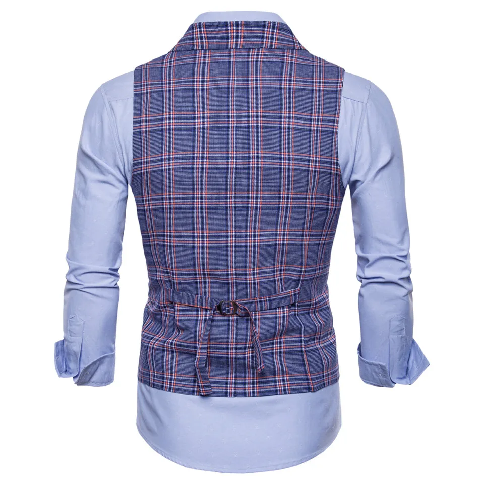 FFXZSJ 2018 New Men’s Business Casual Vest Plaid Vest Men’s High Quality Large Size Jacket Sleeveless Vest Style Slim Fit