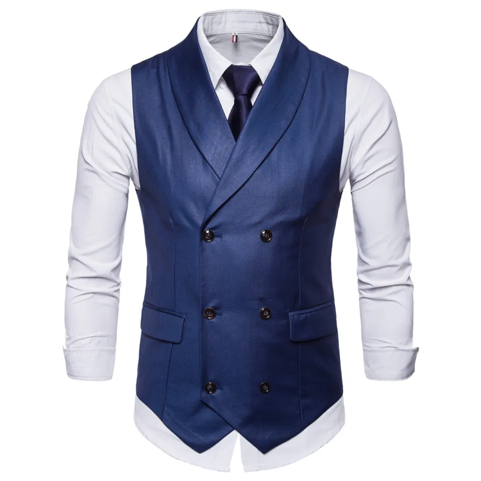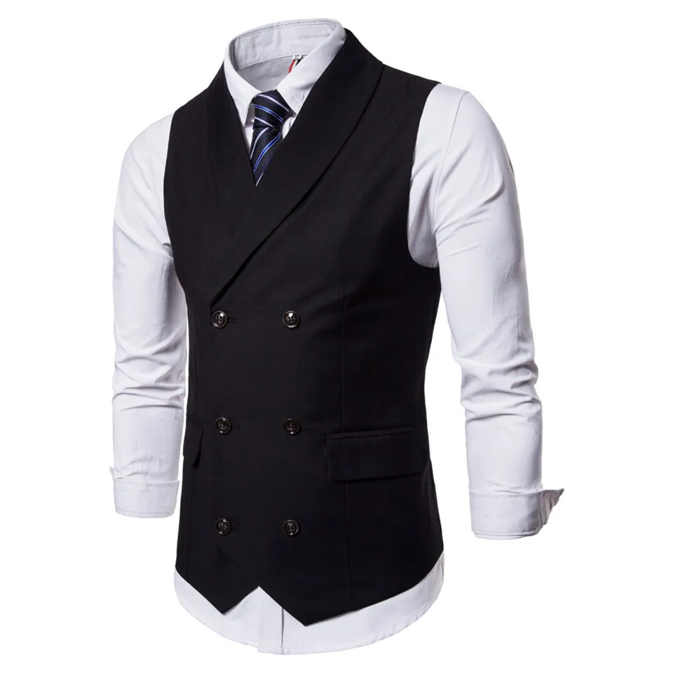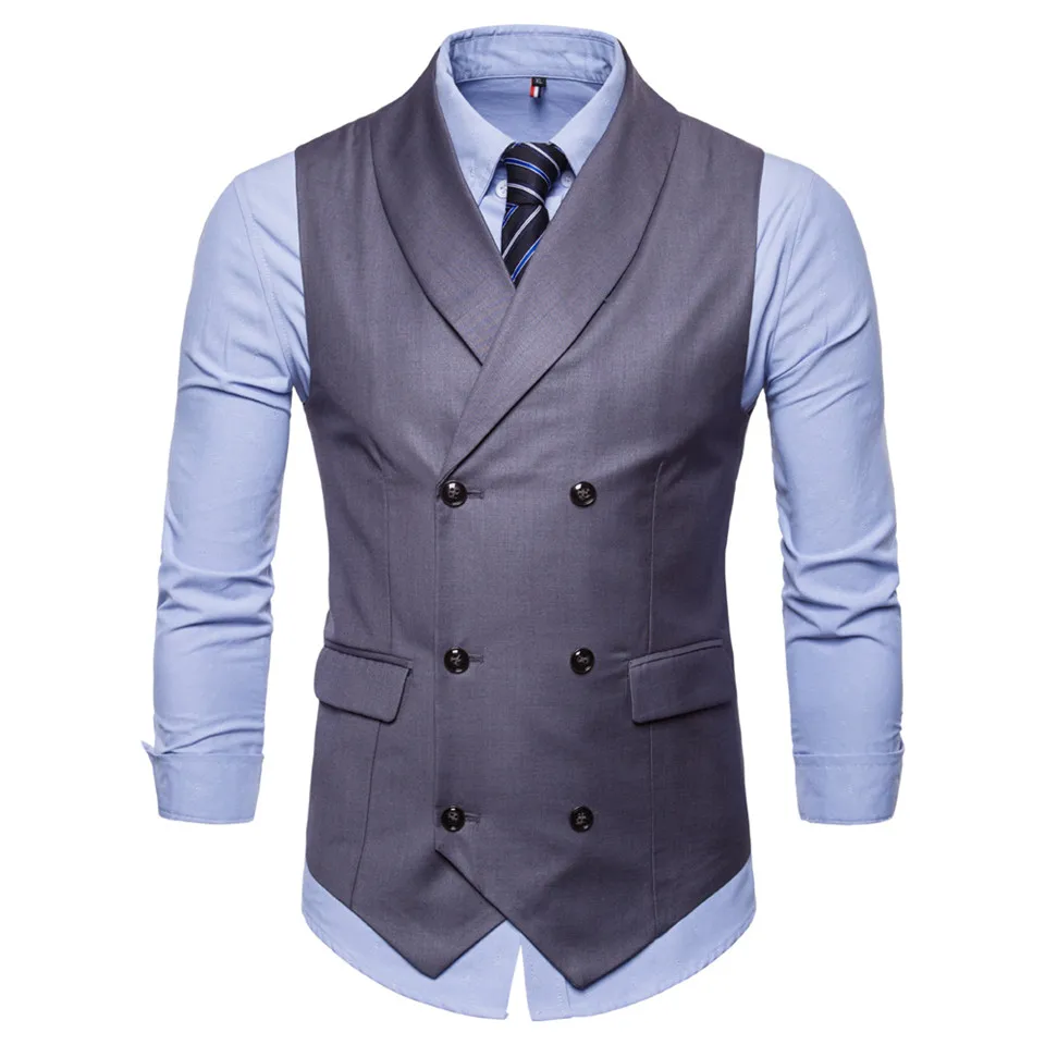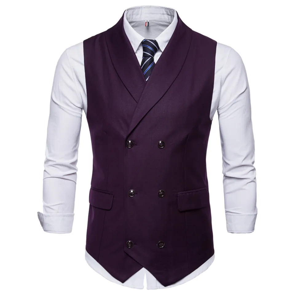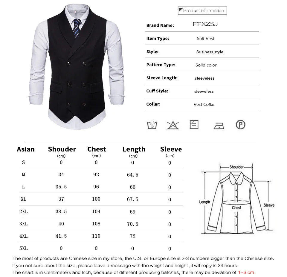 FFXZSJNew Style Double-Breasted Vintage Suit Vests for Men Slim Men Gilet Wedding Waistcoats Colete Homem Sleeveless Dress Vests