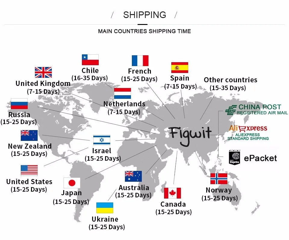 Packages from our warehouse in China will be shipped by ePacket or EMS depending on the weight and size of the product. Packages shipped from our US warehouse are shipped through USPS.