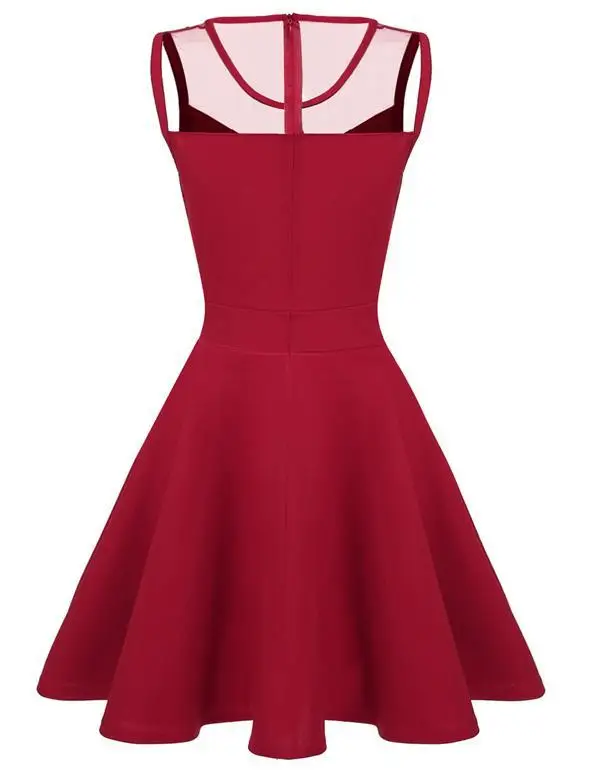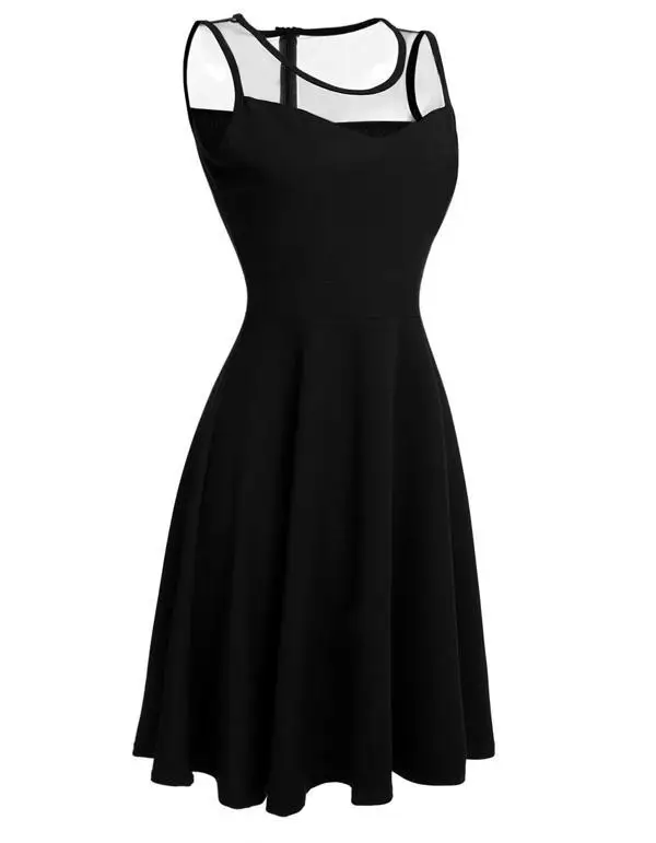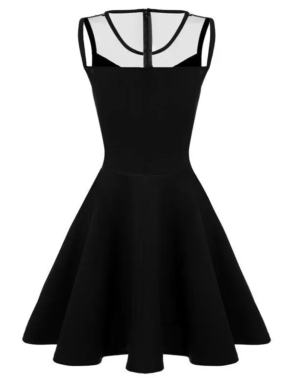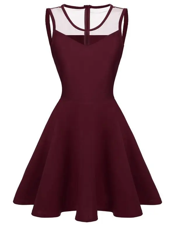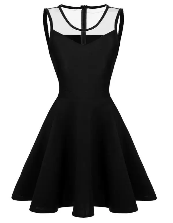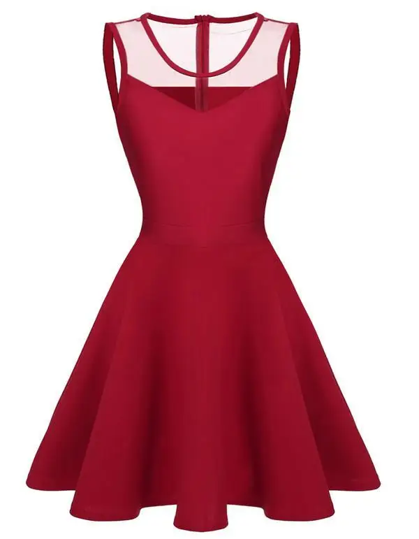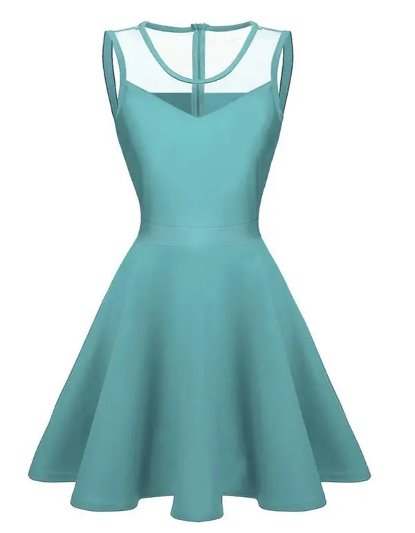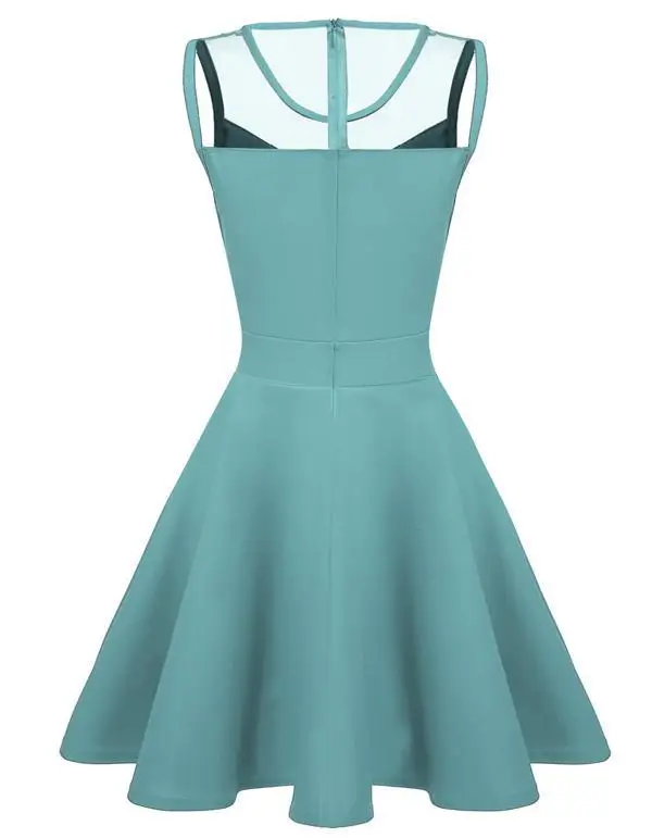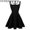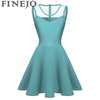 FINEJO Dress Women Summer Bohemia Mesh Casual Lady Sleeveless Fashion High Pleated Waist Patchwork Sexy Party Feminina Sundress