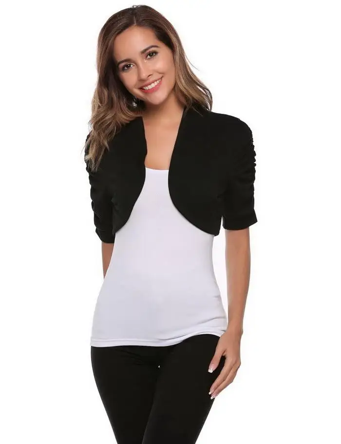 FINEJO Knit Bolero Shrug Women Casual Short Sleeve Lace Floral Light Crop Open Stitch Cardigan Short All-match Shawl Wrap