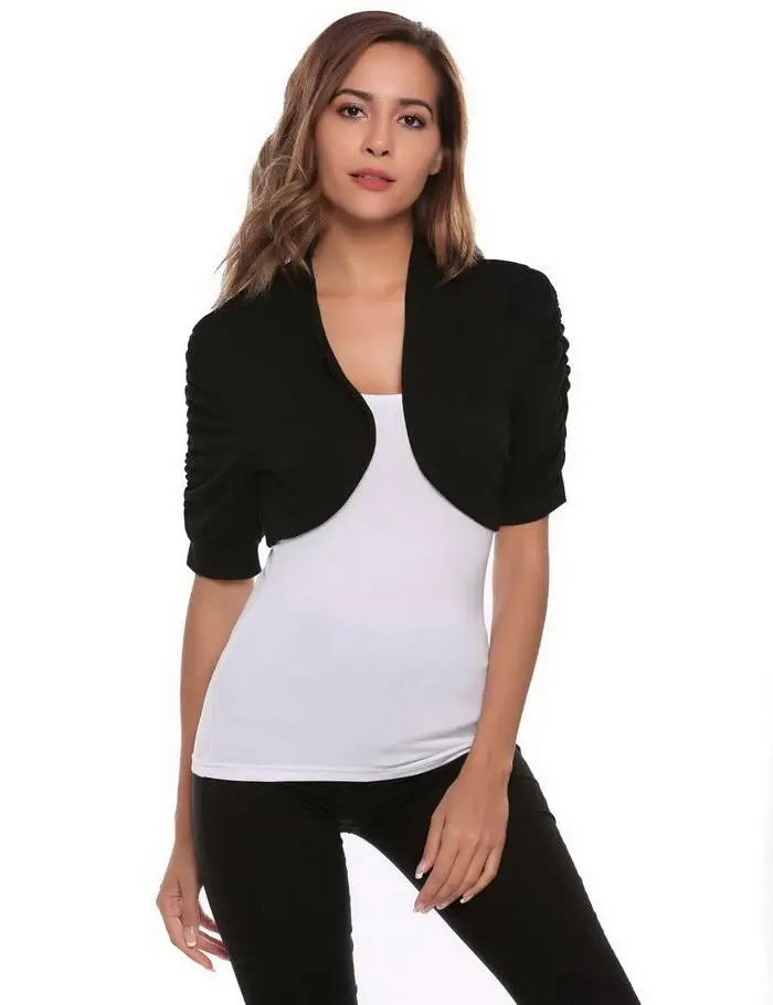 [Style] : FINEJO Knit Bolero Shrug Women Casual Short Sleeve Lace Floral Light Crop Open Stitch Cardigan Short All-match Shawl Wrap