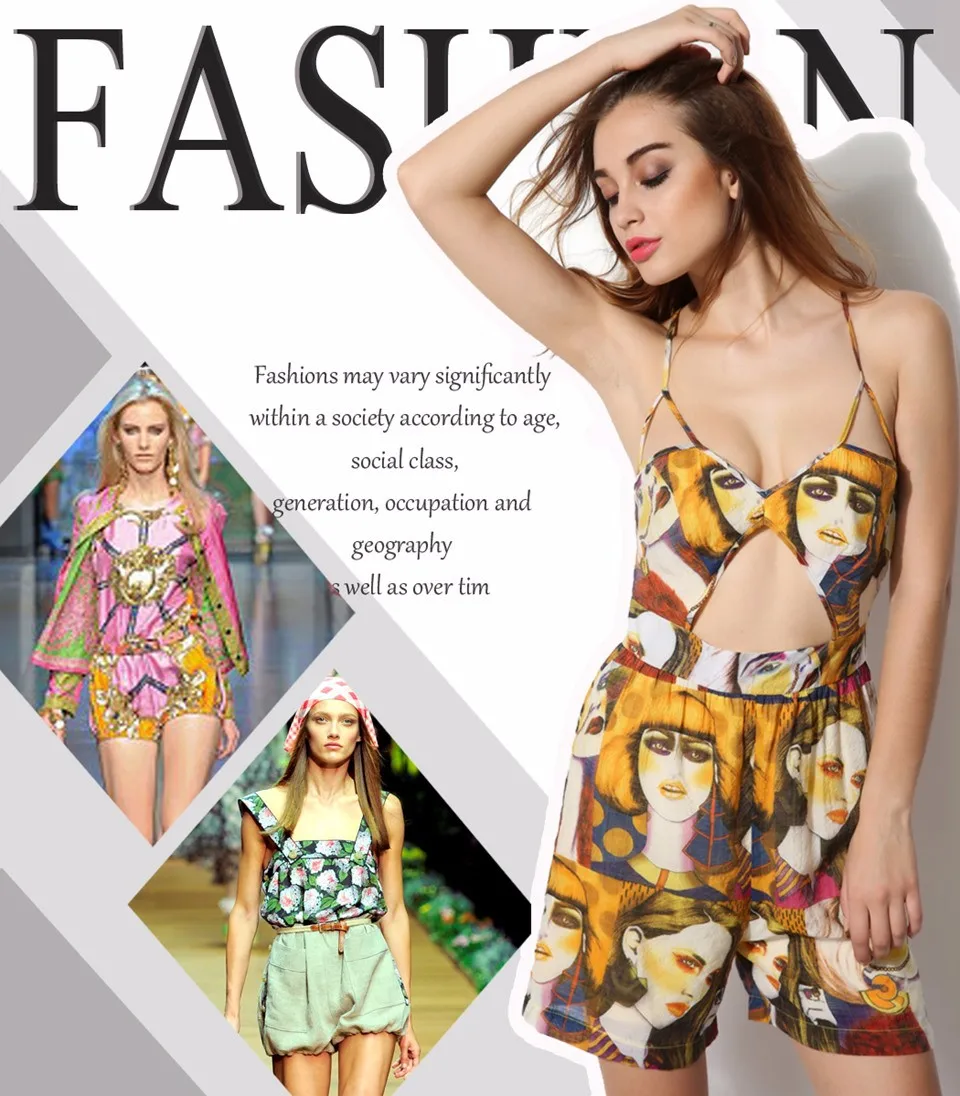 FINEJO Sexy Deep V Neck Backless Bodysuits Fashion 3D Print Spaghetti Strap Short Jumpsuit Sleeveless Women Summer Playsuits
