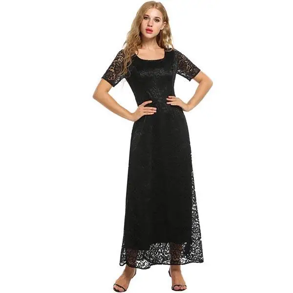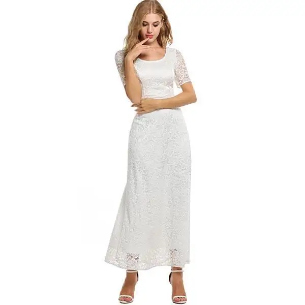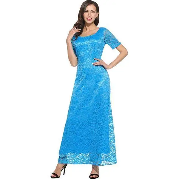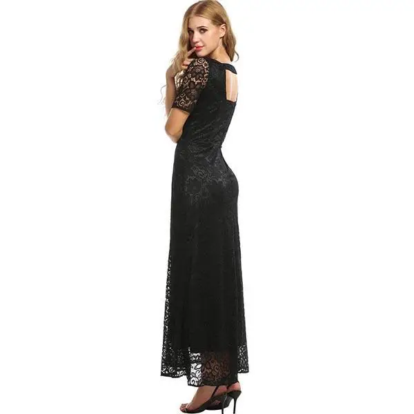 FINEJO Wedding Women’s Long Dress Maxi Summer Sleeve Lace Solid Full Elegant Fit Party Dresses Fashion Bohemia Feminina Vestidos