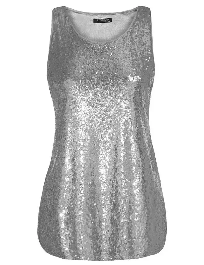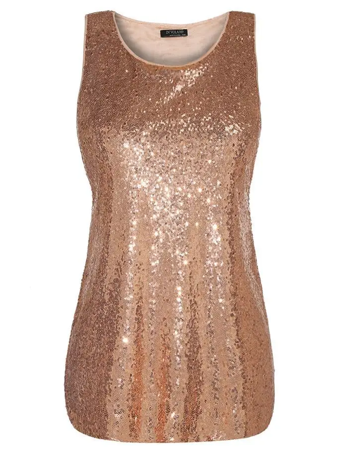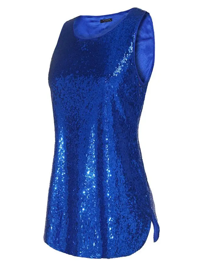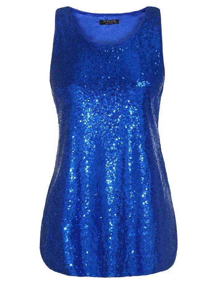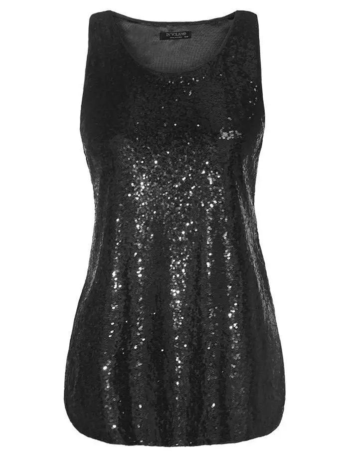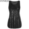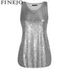 FINEJO Women’s Tank Tops Summer Sexy Embellished Sequin Plus Size Vest Women Sleeveless Party Solid Fashion Feminina Pullover