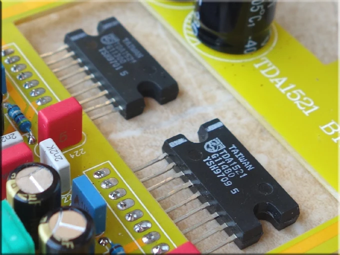 • TDA1521 power amplifier integrated block with short circuit, overheating, squelch and other protection functions, dual channel BTL output up to >30WX2
