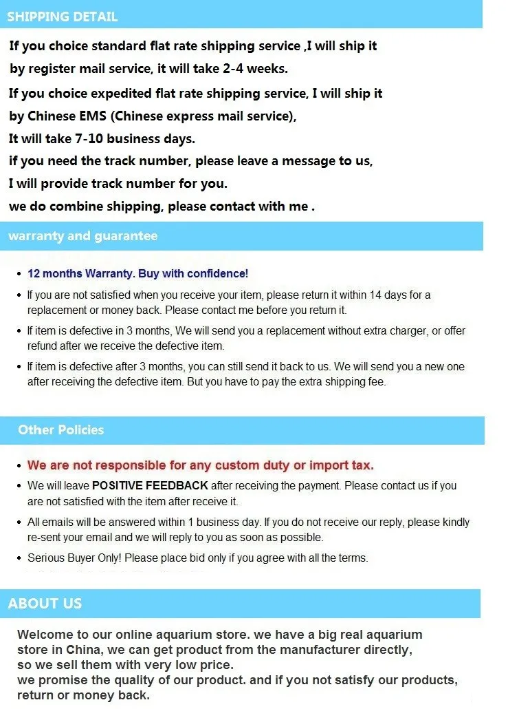 We are not responsible for any custom fees once the items have shipped. By purchasing our products, you consent that one or more packages may be shipped to you and may get custom fees when they arrive in your country.