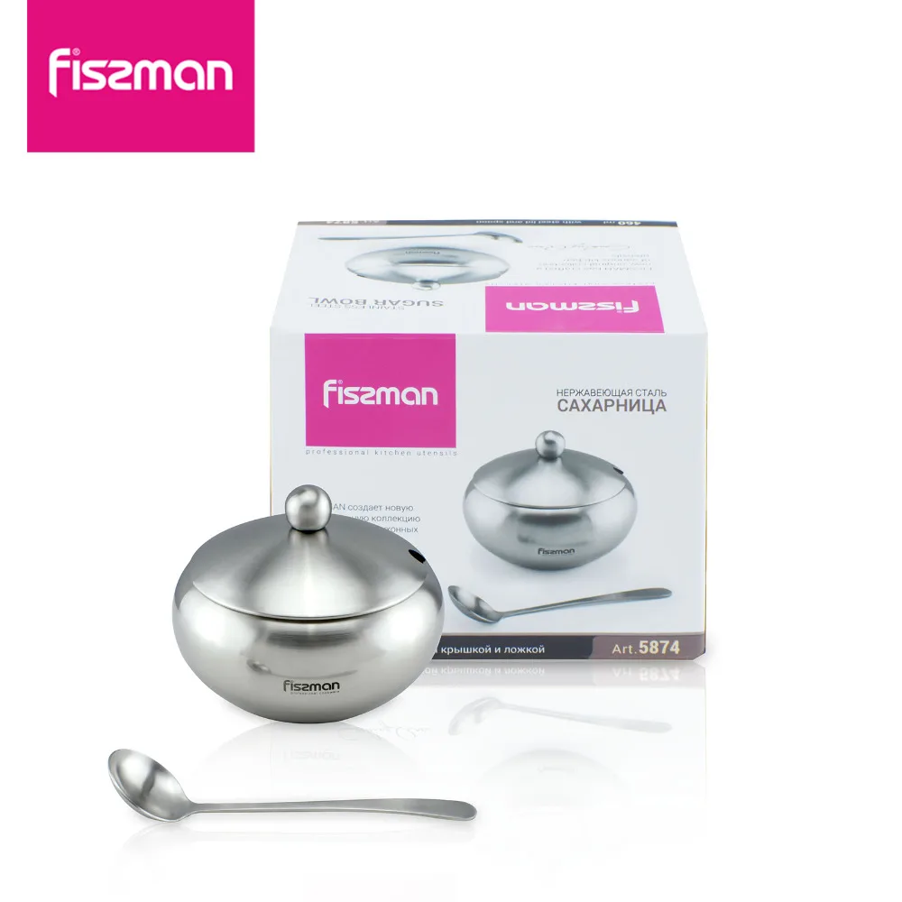 Fissman Stainless Steel 460ml Sugar Bowl Seasoning Jar Condiment Spice Container Canister Cruet with Lid Spoon Sugar Creamer Pot