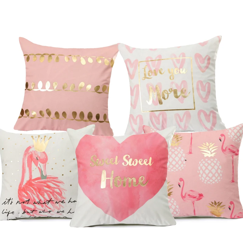 Flamingo Bronzing Cushion Cover Sweet Home Polyester Cotton Geometric Pink Printed Home Decorative Pillows Cover Case Banana