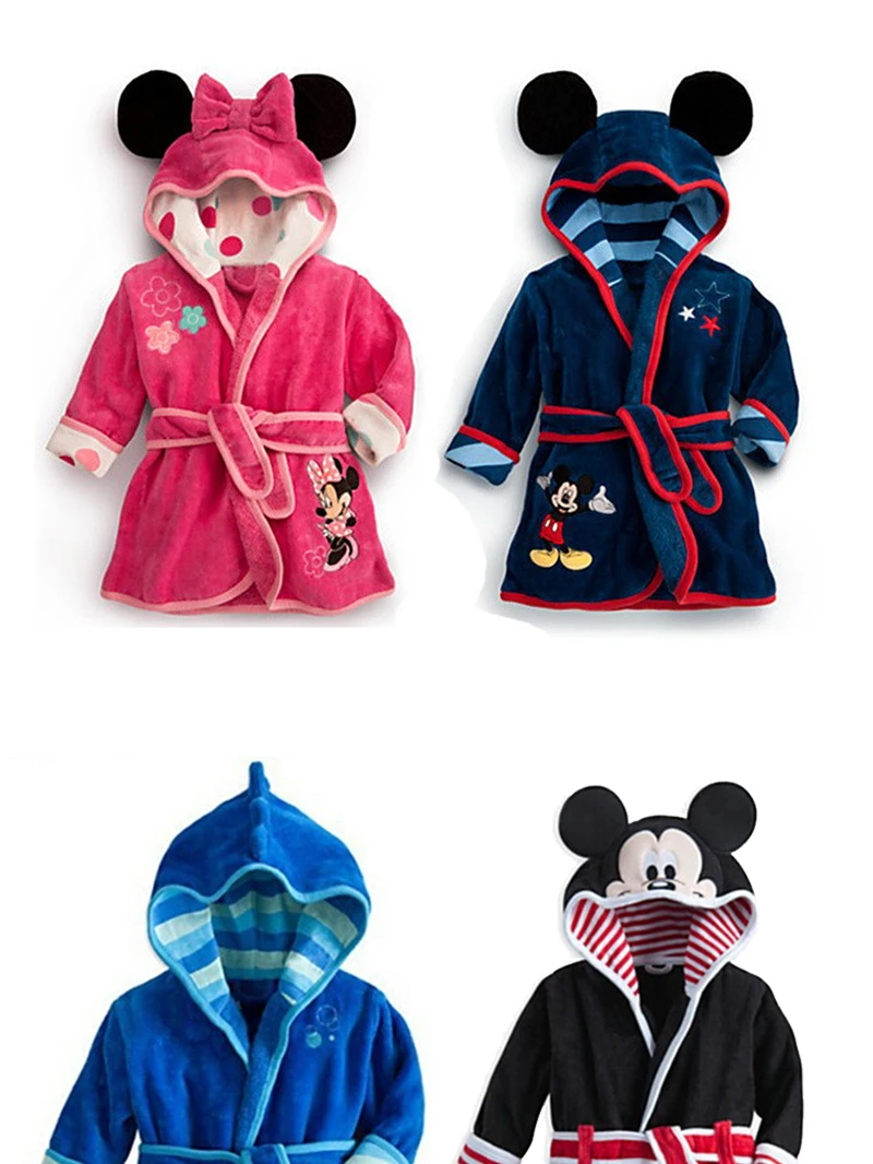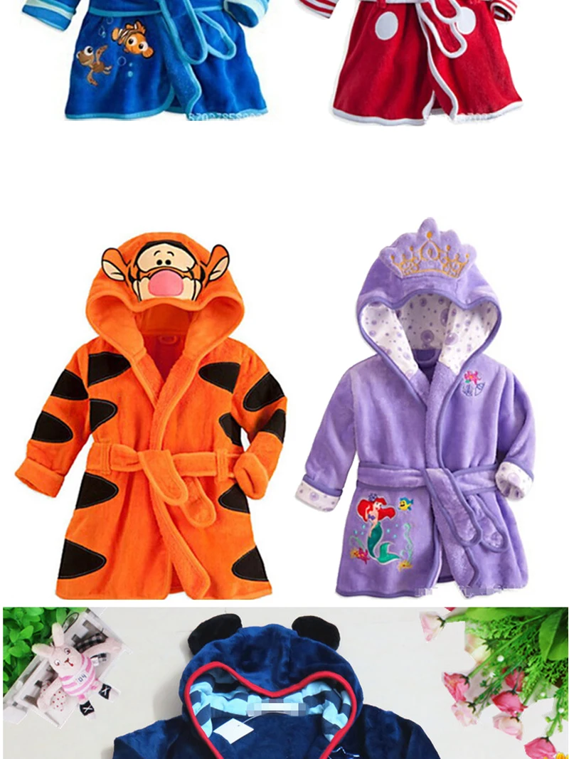Flannel Boys Girls Sleepwear Cartoon Kids Robes Lovely Animal Hooded Bath Robes Long Sleeve Baby Boy Bathrobe Child Clothing