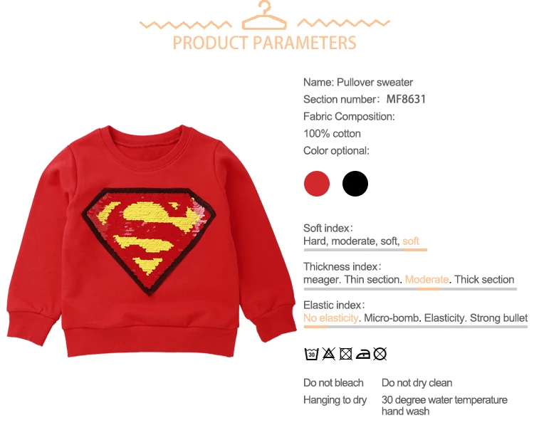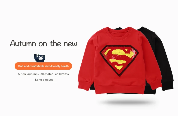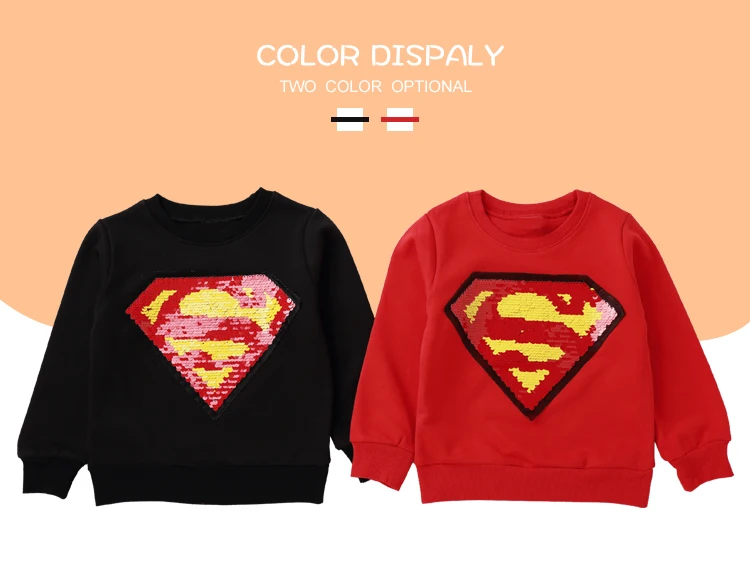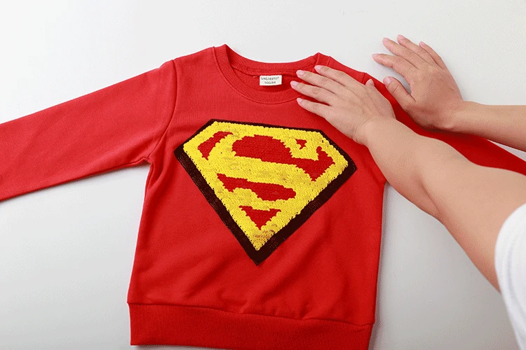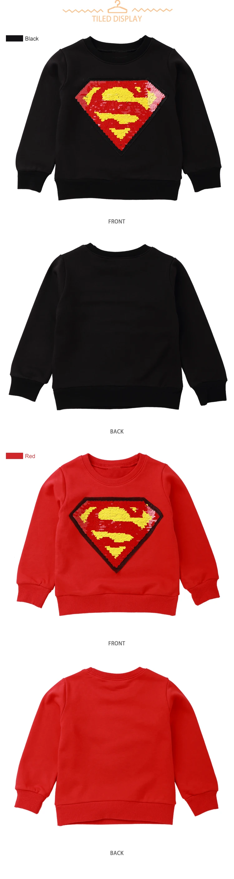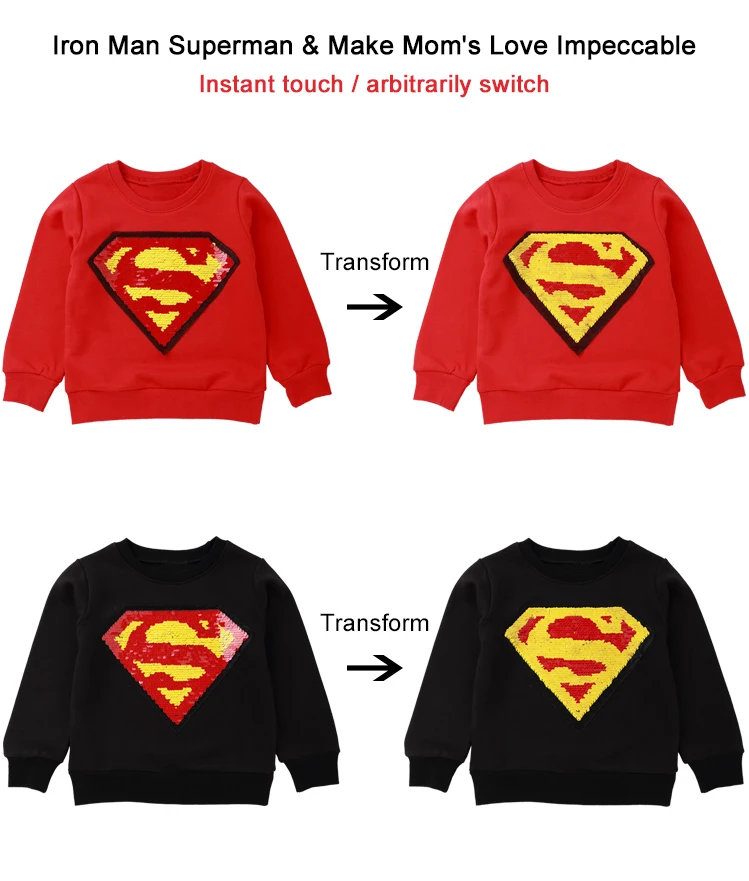 Flippy Sequin Sweatshirts For Boys Girls Cute Fun Superman Blouse Kids Hoodies Children Pullover Tops Autumn Winter Baby Clothes