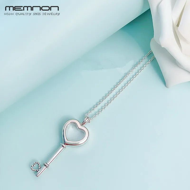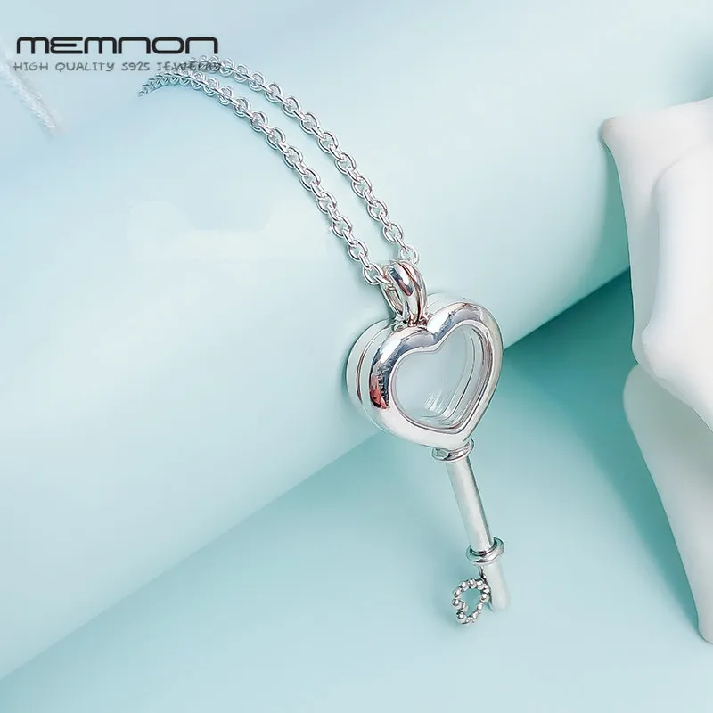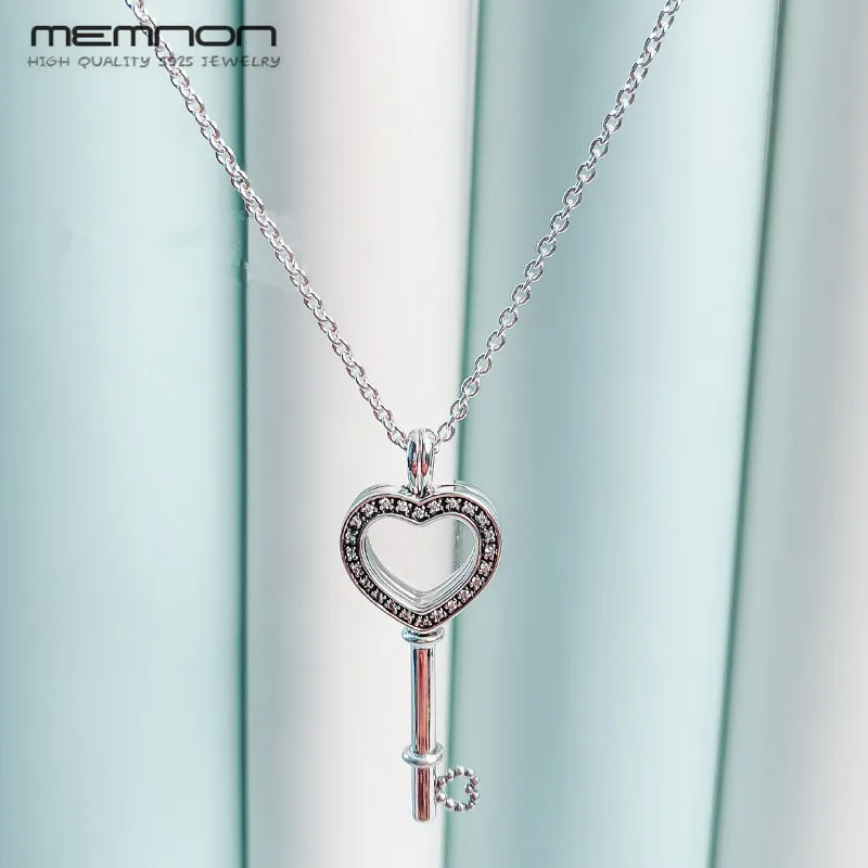 Detail Name: Floating Locket Heart Key Necklaces for women with CZ 925 sterling silver link chain silver pendant necklace fine Memnon jewelry