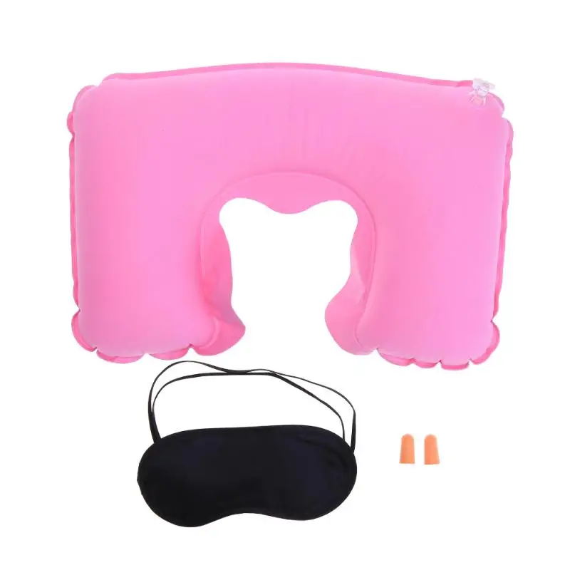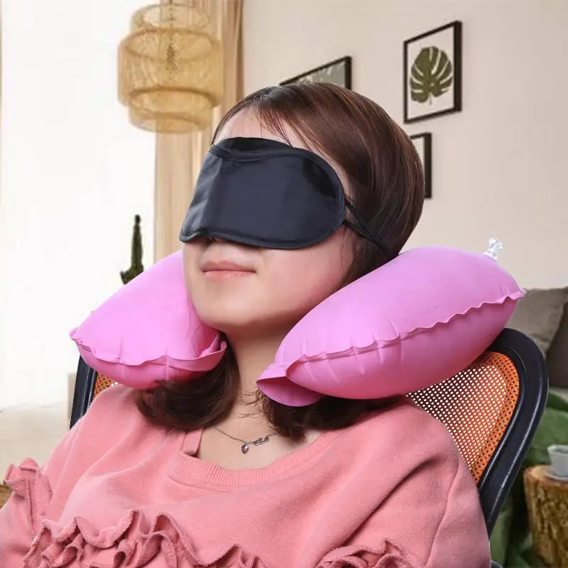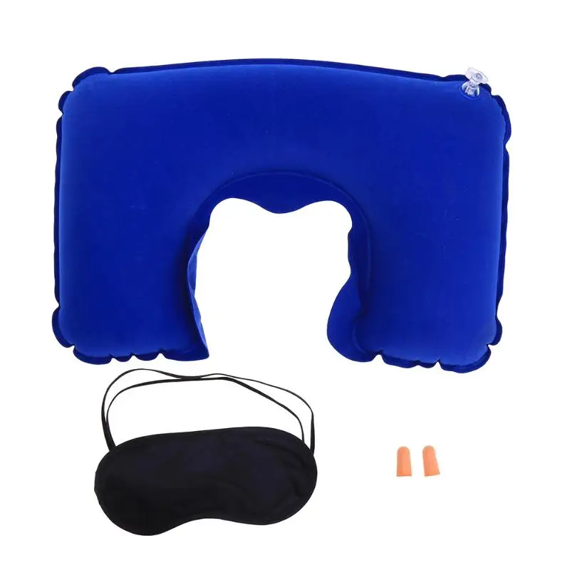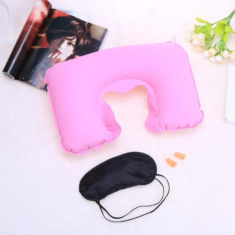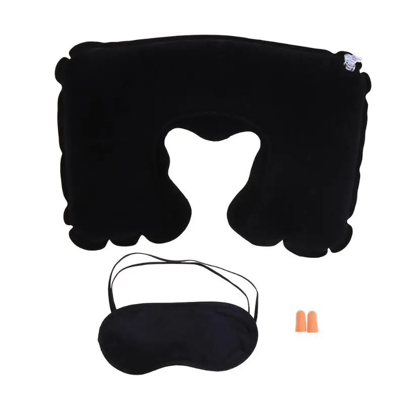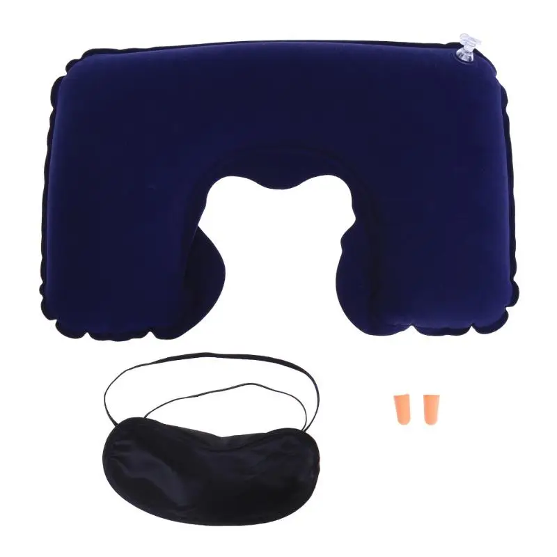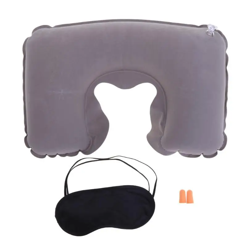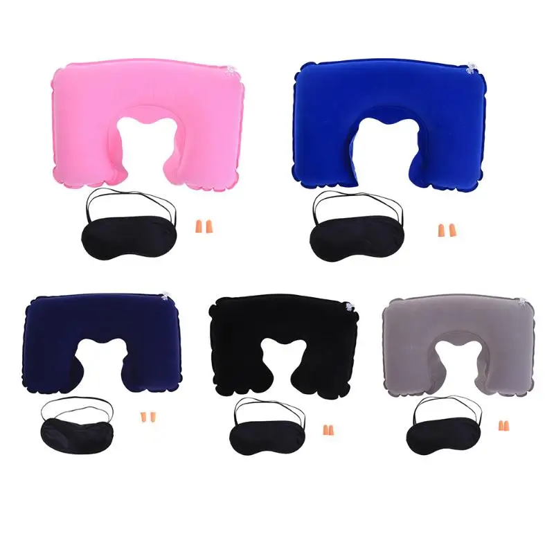 3pcs Portable Flocking U Shaped Inflatable Pillow Eyes Cover Earplugs Home Travel Supplies