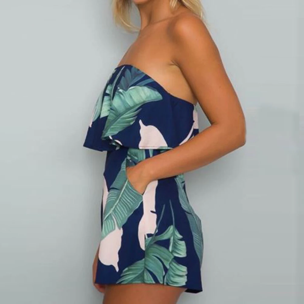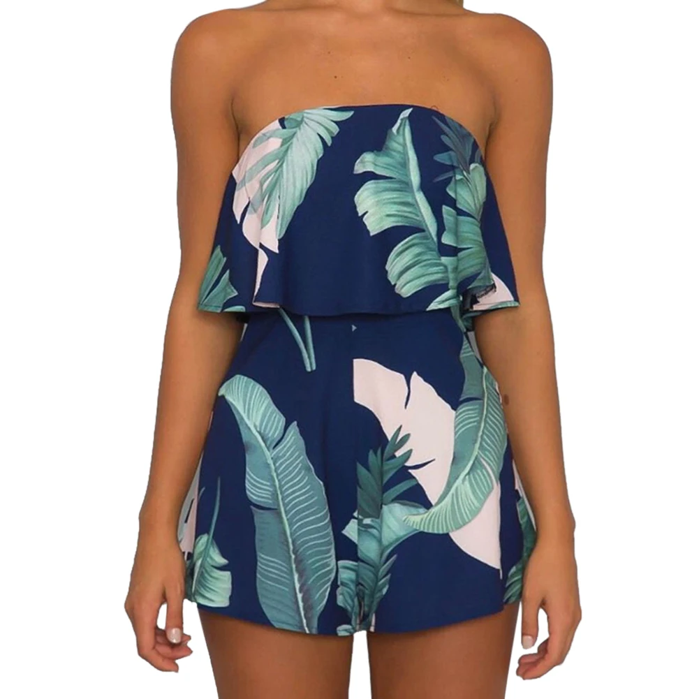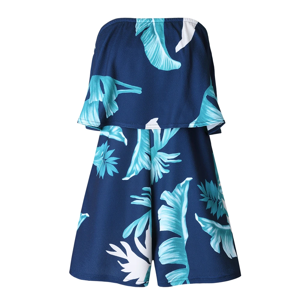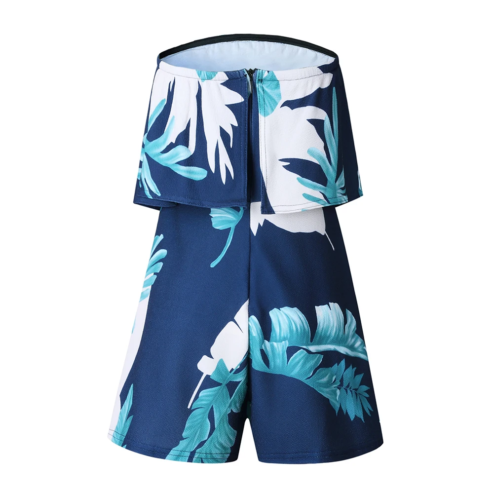 Floral Print Rompers Playsuits Slash Neck Women Off Shoulder High Waist Jumpsuit Sexy Beach Girls Short Overalls