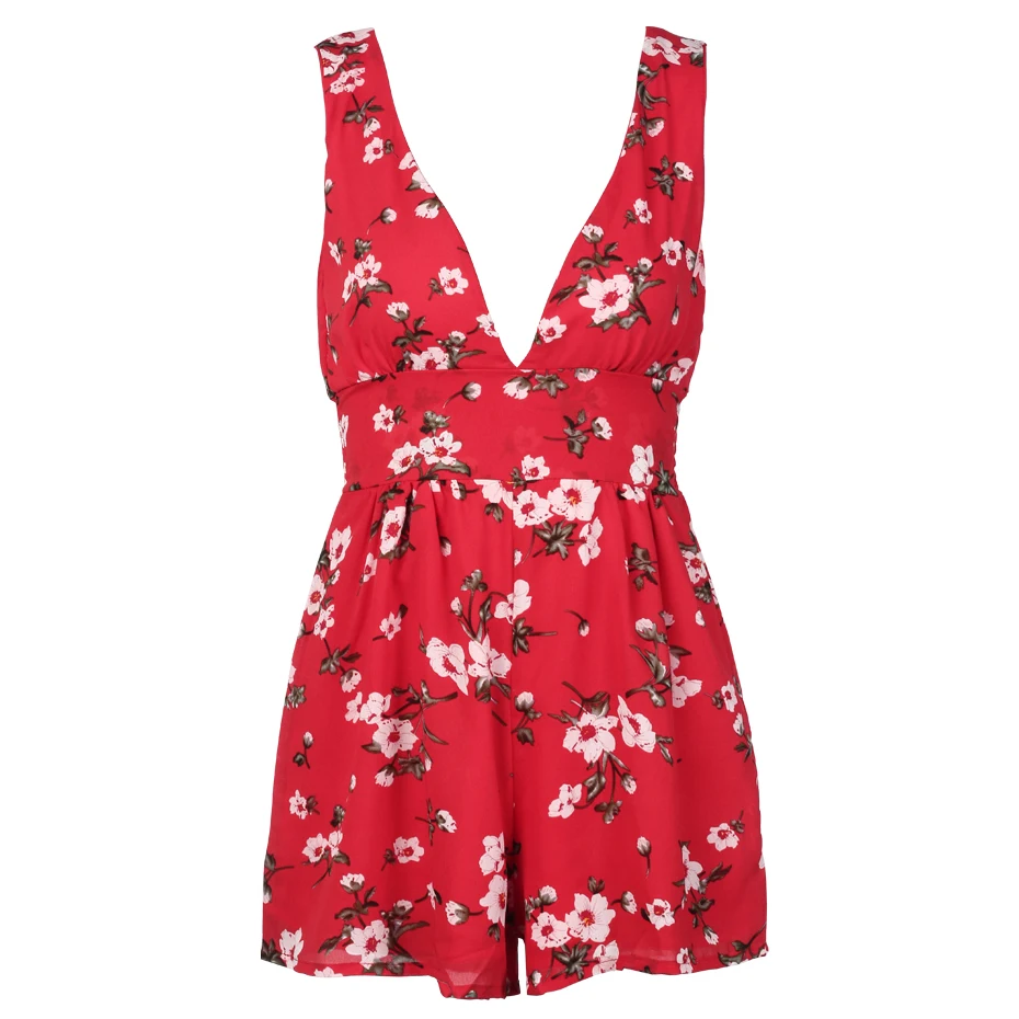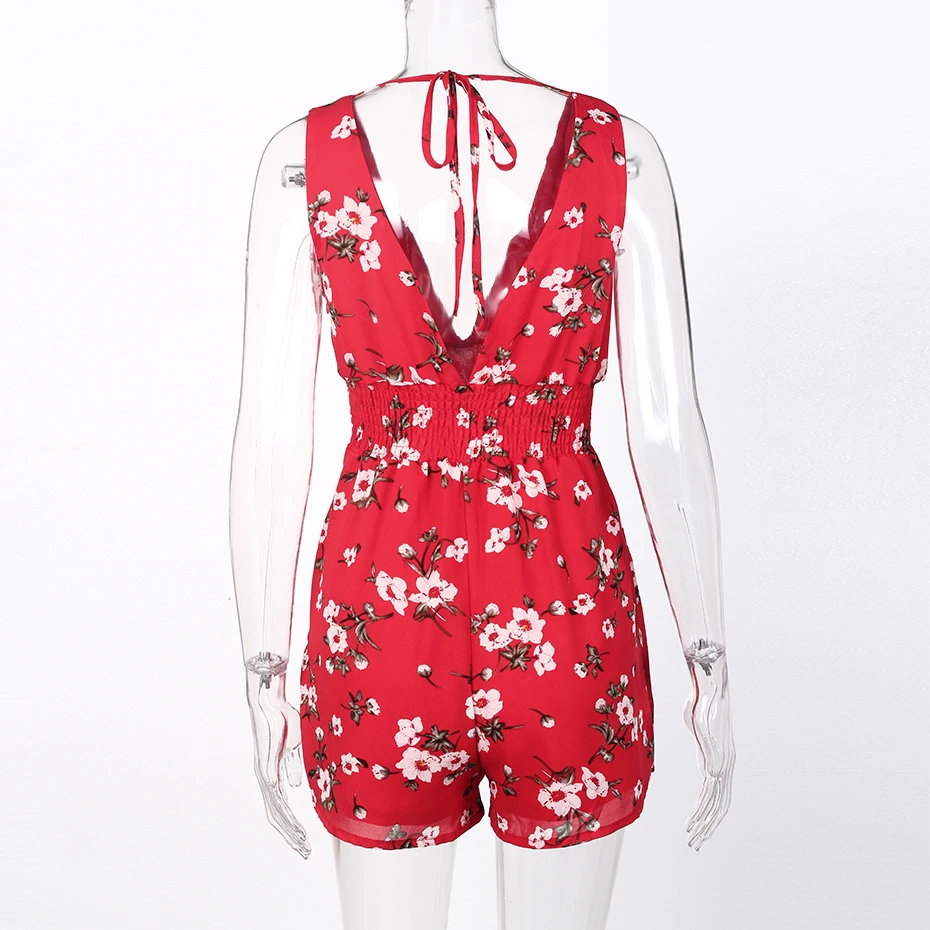 Floral Print Women Rompers Summer 2018 Sleeveless Chiffon Jumpsuit Short Backless Deep V Neck Casual Sexy Romper Womens Playsuit