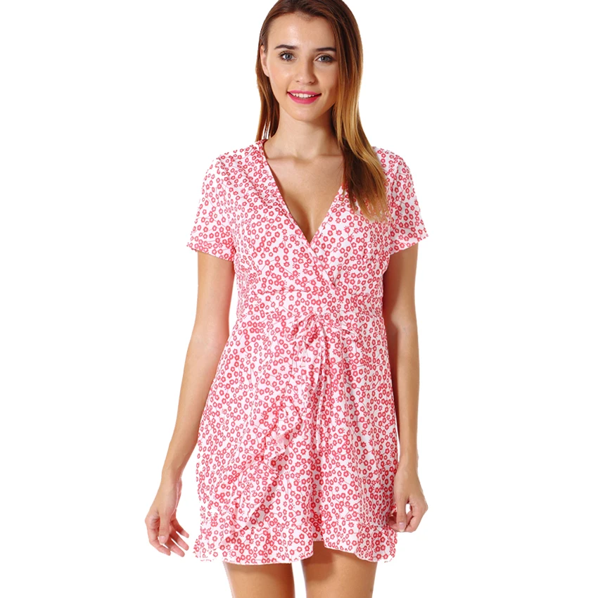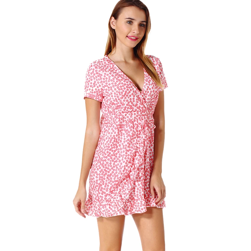 FLORATA Women Dress Summer Sexy Sleeveless Floral Print Chiffon Dress Boho Style Short Party Beach Dresses Vestidos De Fiesta