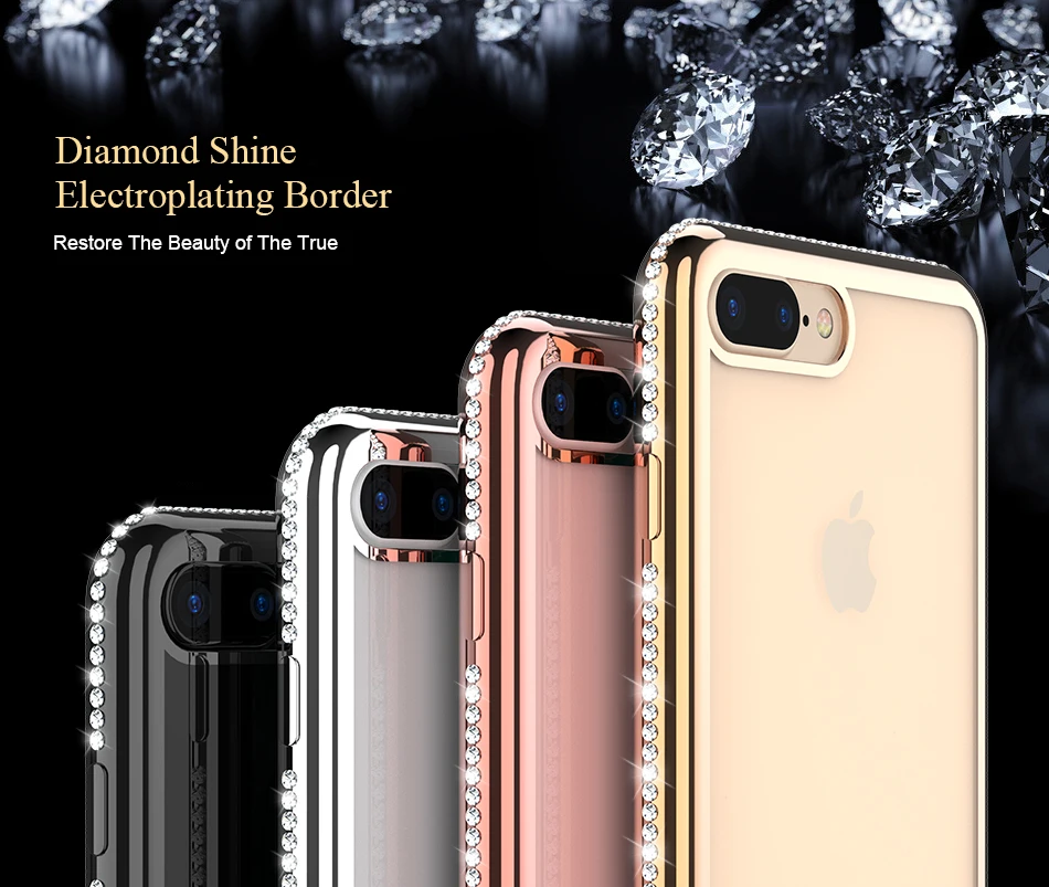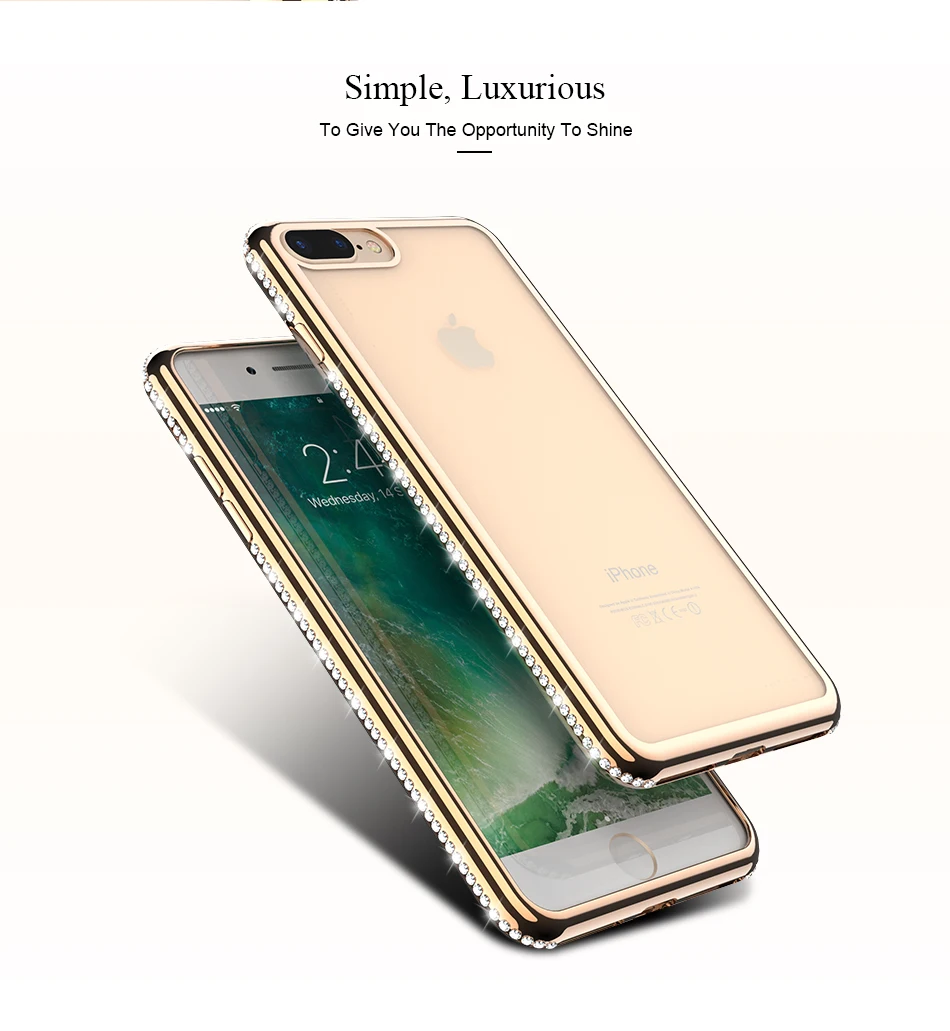 FLOVEME Glitter Soft Case for iPhone 7 iPhone 8 6 6s plus Plated Phone Cases for iPhone 7 X 5s 5 SE Rhinestone Girly Cover Funda