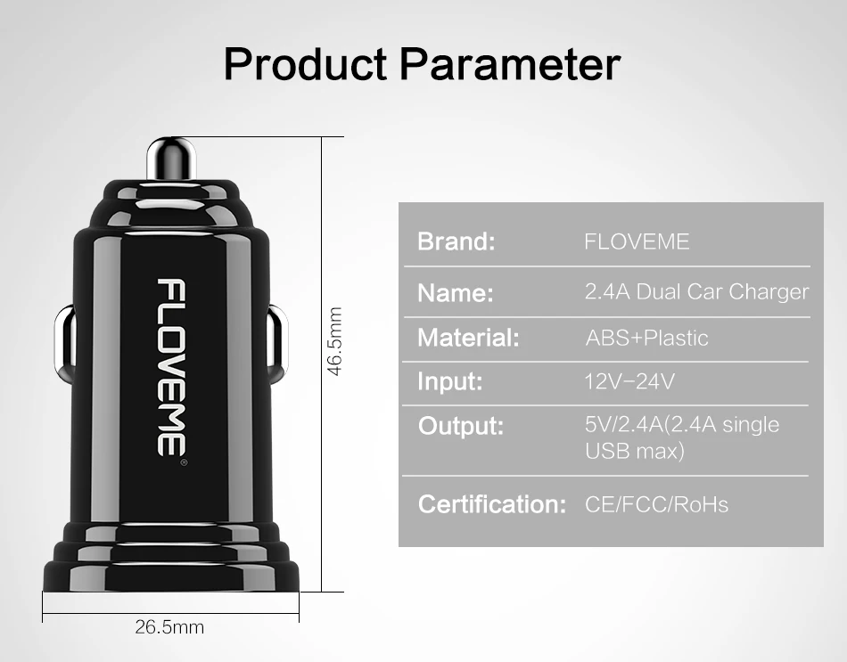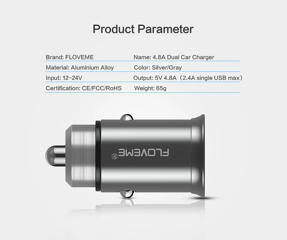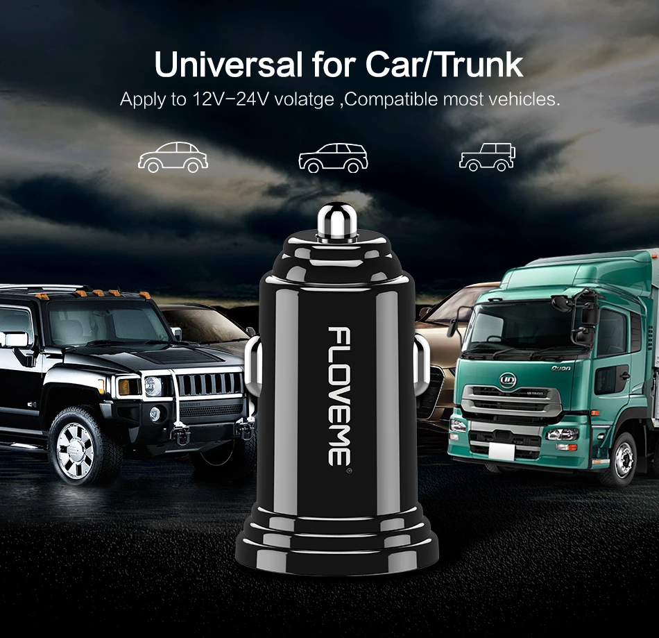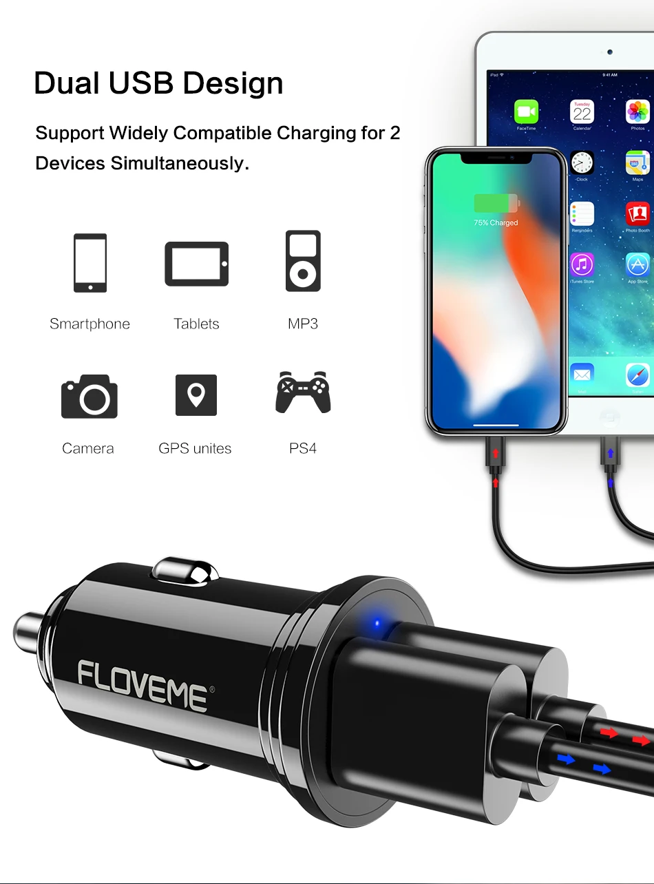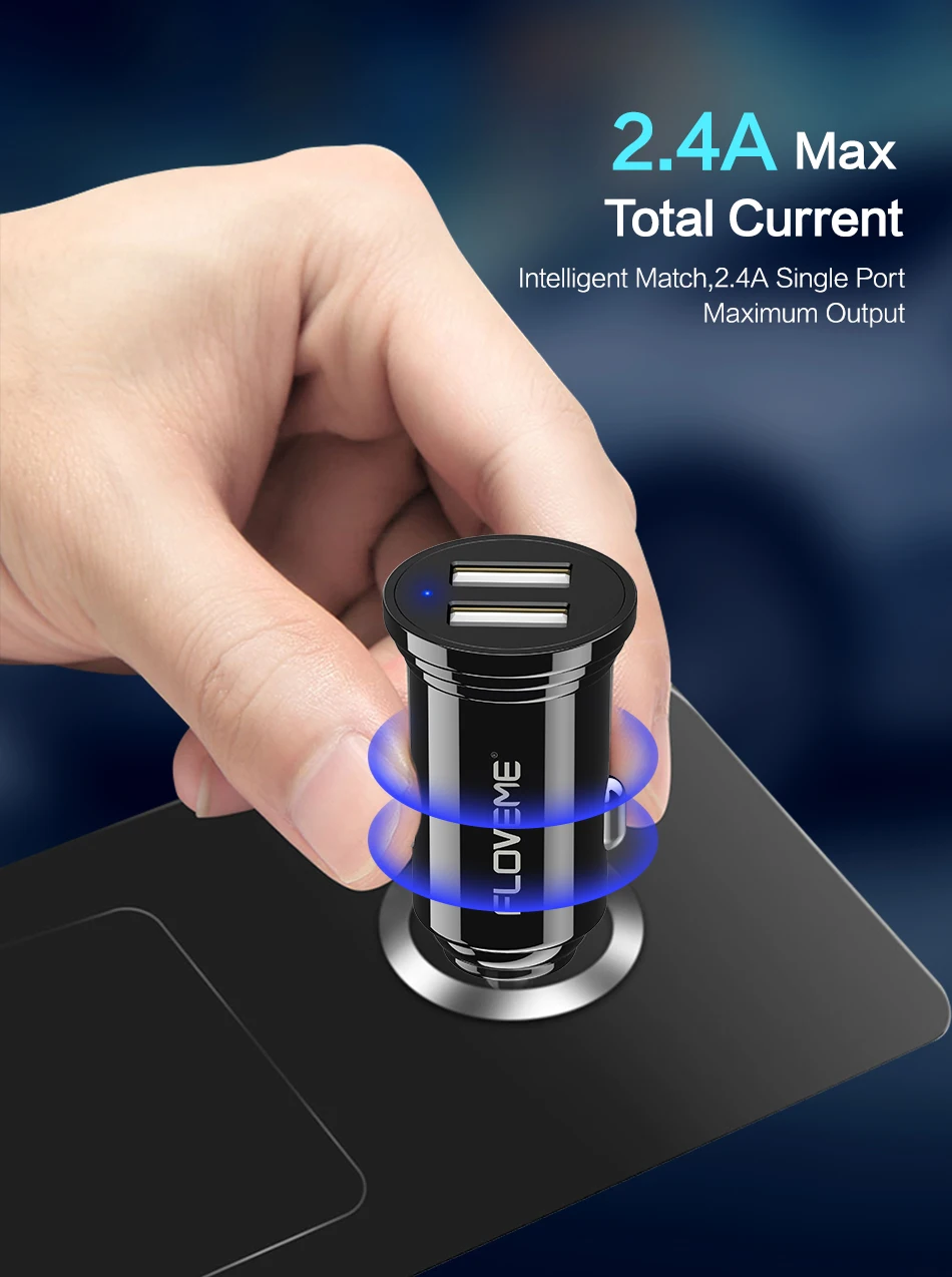 FLOVEME Universal High Quality Dual USB Car Phone Charger 2 Port 5V 4.8A Black Car-Charger Cargador USB Movil Power Adapter Auto