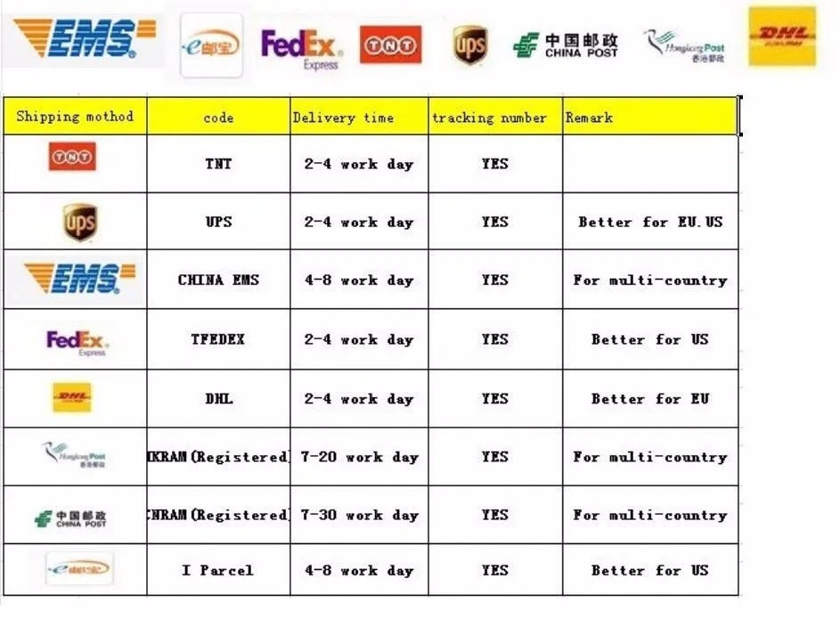 Packages from our warehouse in China will be shipped by ePacket or EMS depending on the weight and size of the product. Packages shipped from our US warehouse are shipped through USPS.