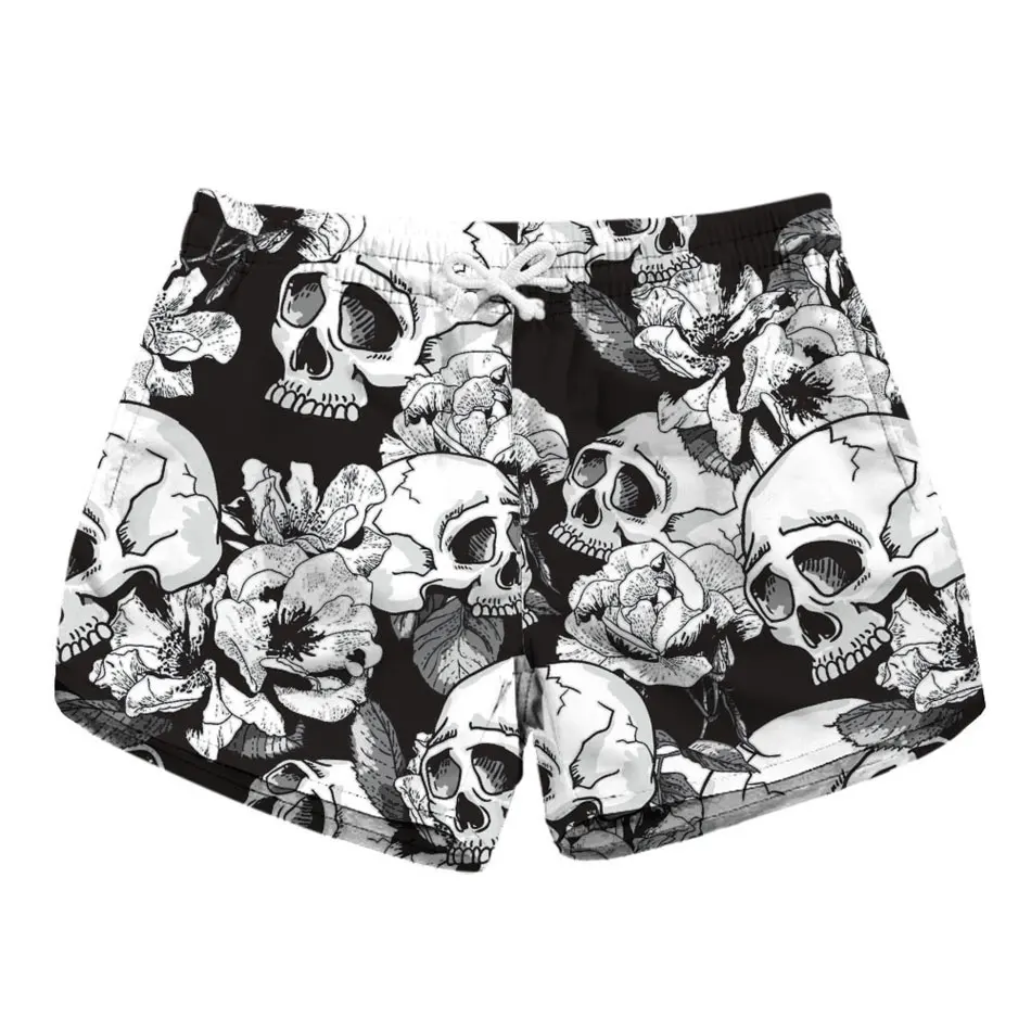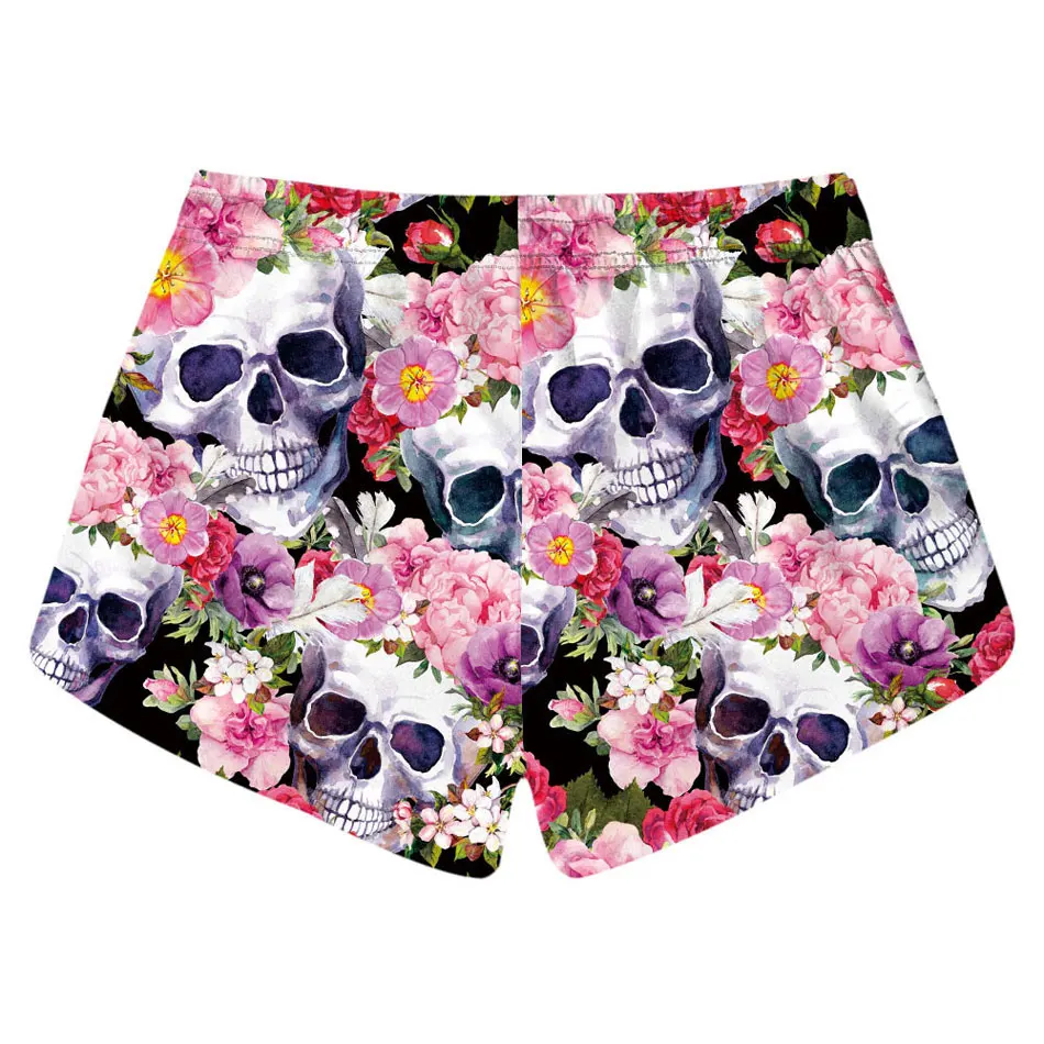 Flowers Skull Printed Women Beach Shorts Drawstring Waist Ringer Shorts 2018 Summer Sports Running Shorts