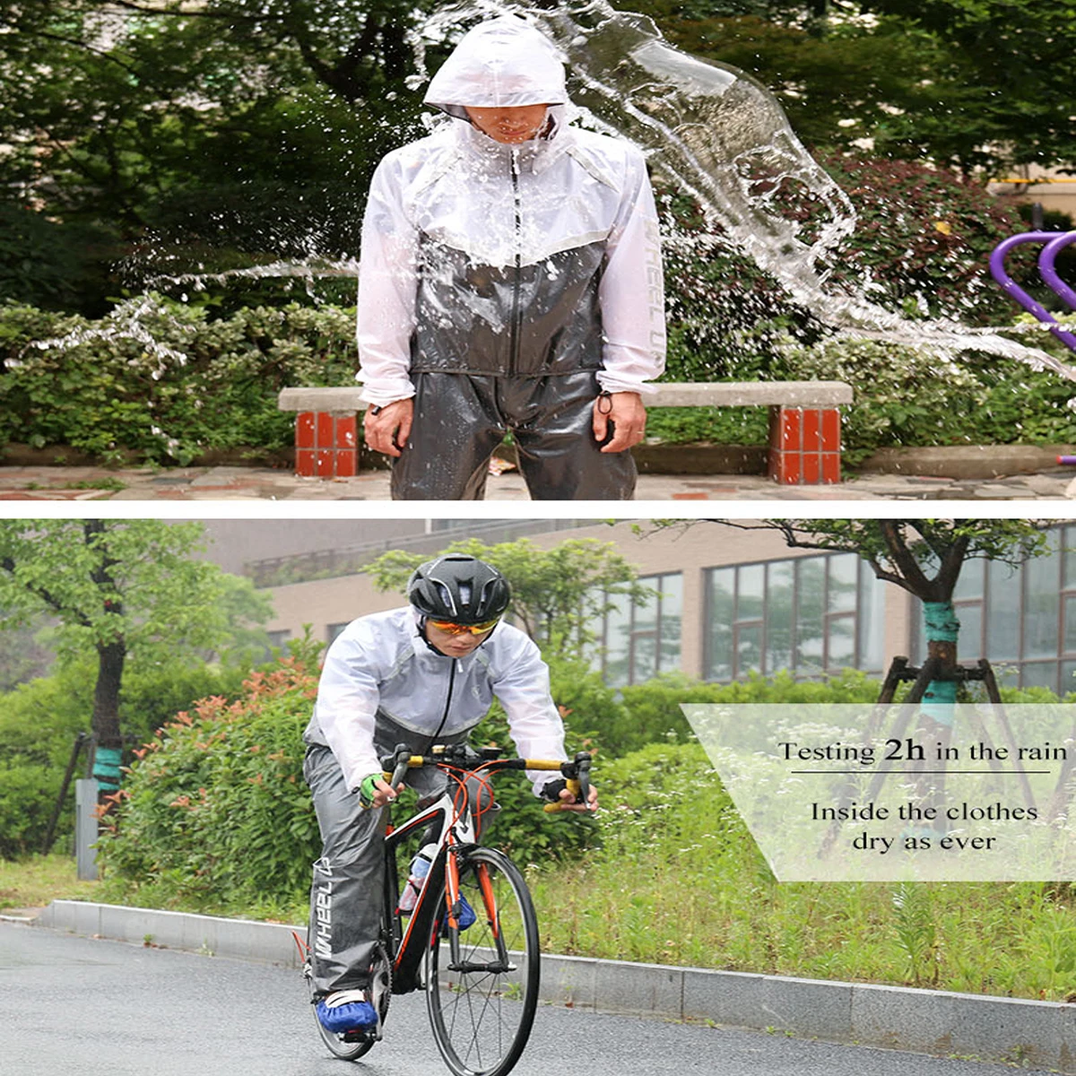 Testing 2 Hours in the rain: Inside the clothes dry as ever.