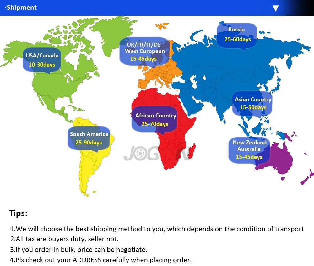 -Africa and South America: did not receive the goods within 90 business days, full refund or resend.
