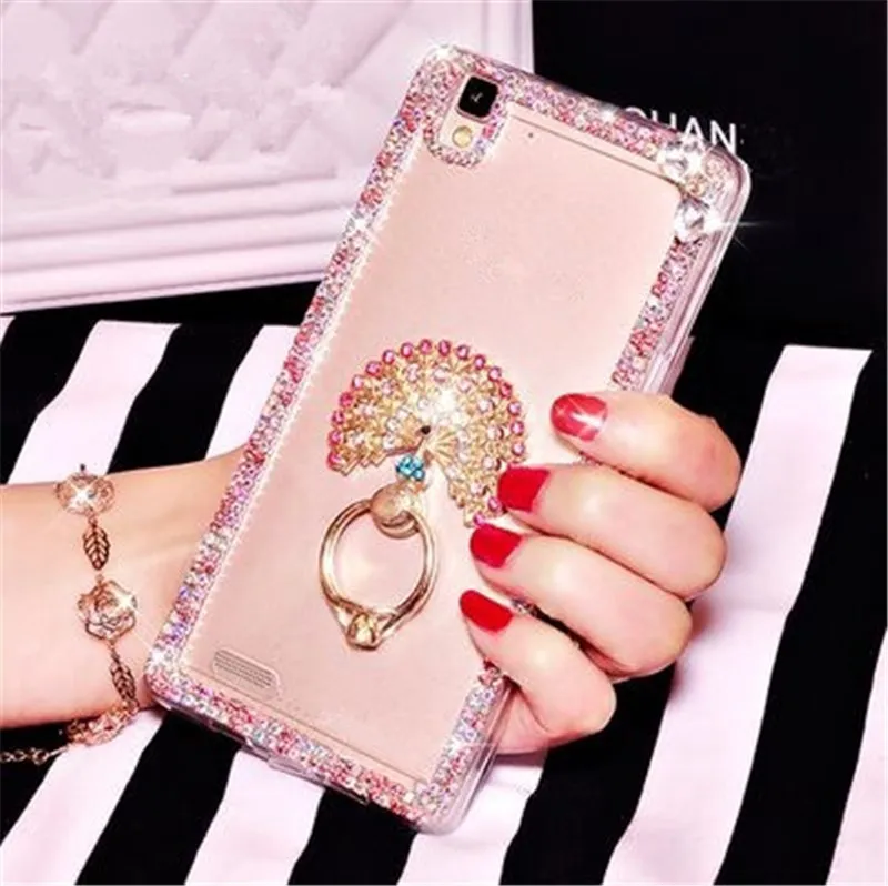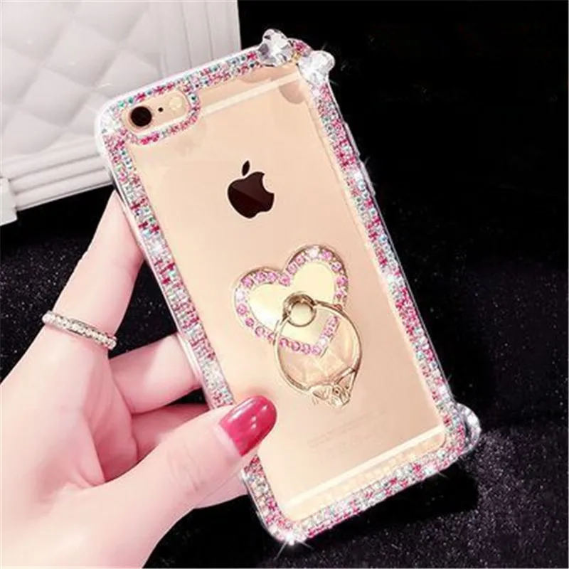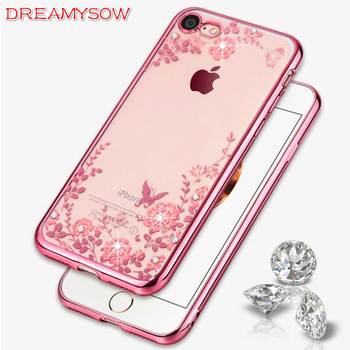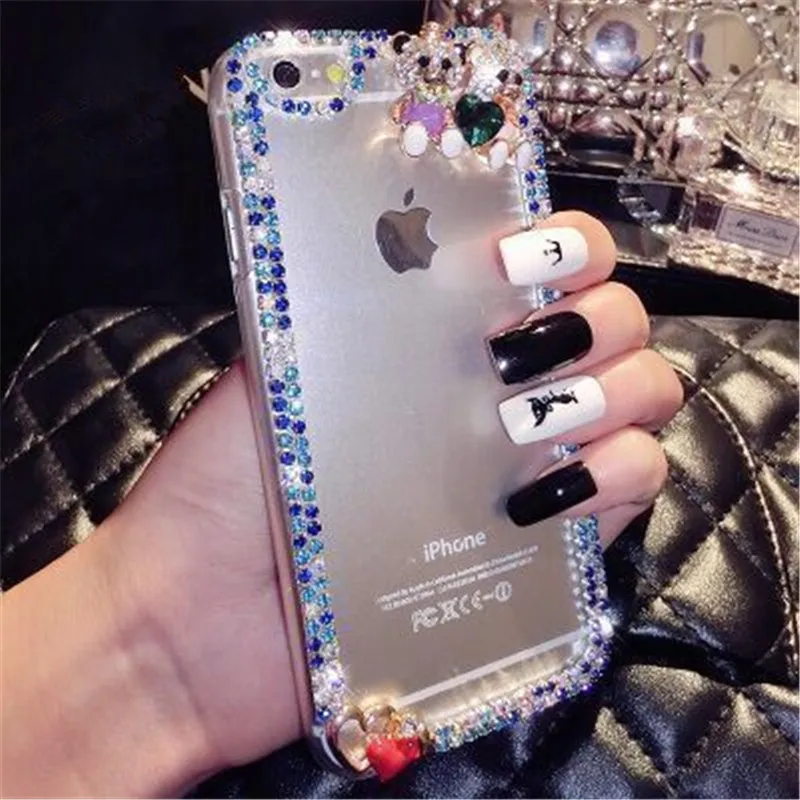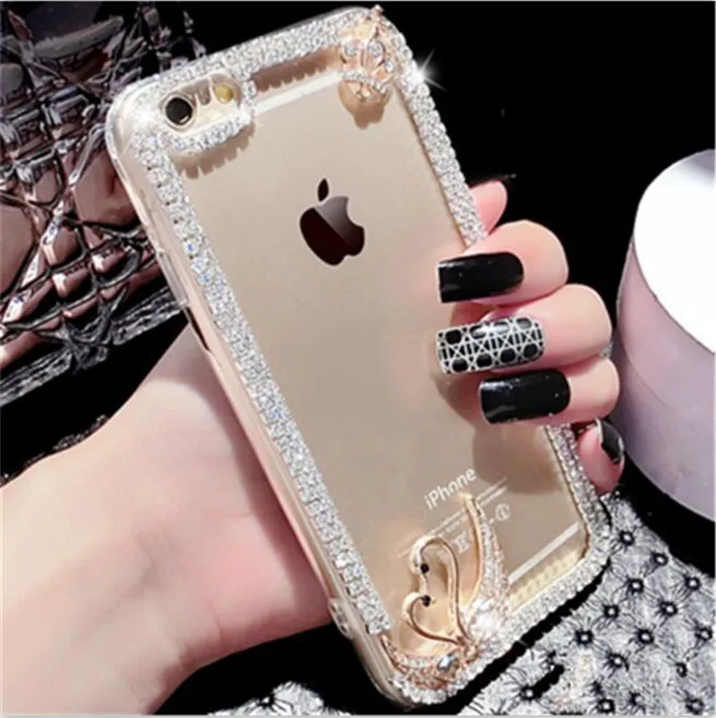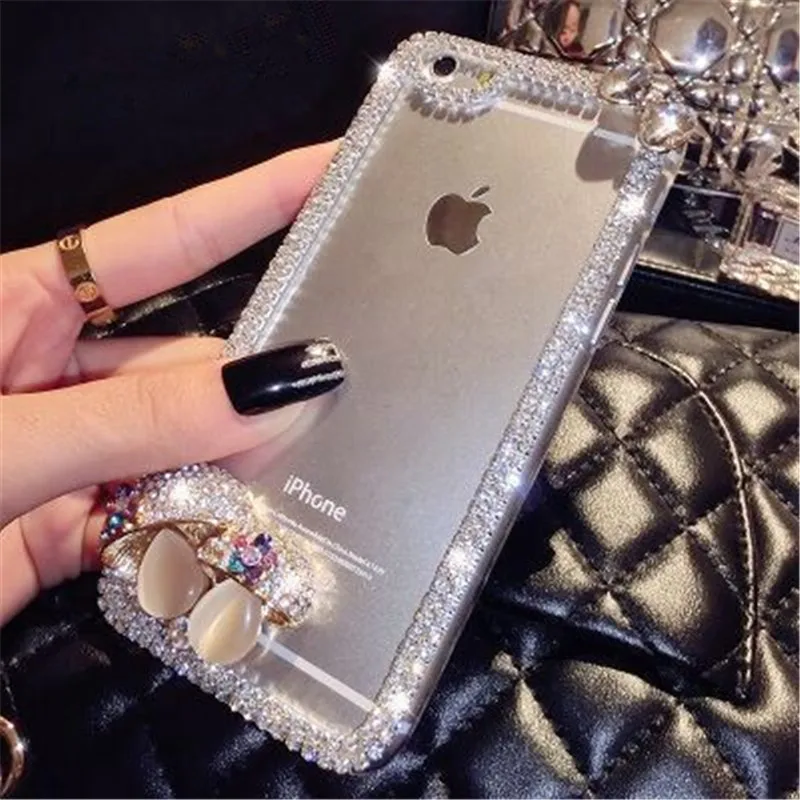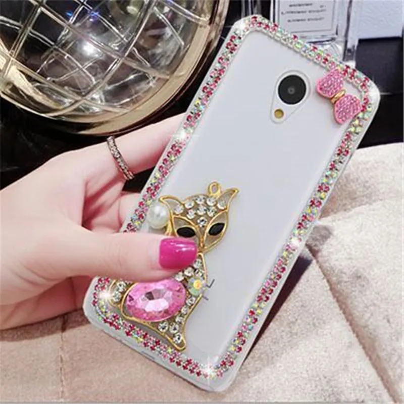 For iPhone 5C 5S 6 6S 7 8 Plus X Cute Fox Bling Rhinestones Diamond Chain Glitter Phone Case Soft Rubber Transparent Back Cover