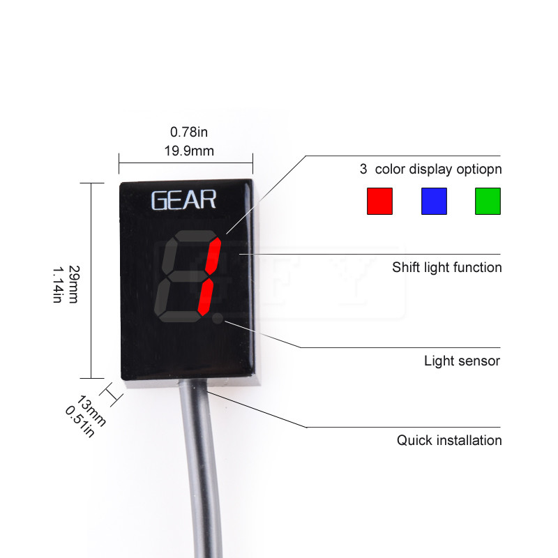 - After you receive the gear indicator, pls connect the cable at right port according our poduct page and plug into your motorcycle’s ecu plug, then open your motorcycle’s power(not ignition) and then it will younts from 6-1 and then “L” blinks, L means learning, when “L” blinks, no more wait, ignition your motorcycle, and then run at different speed to set the gear indicator;