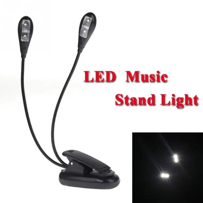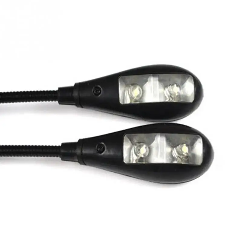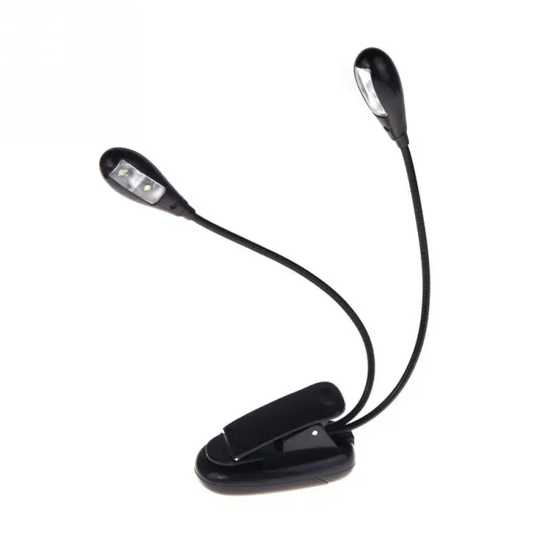 For Night Reading book Lamp 2 Dual Arms Clipping 4 LED Flexible Music Stand Clip On Light Lamp