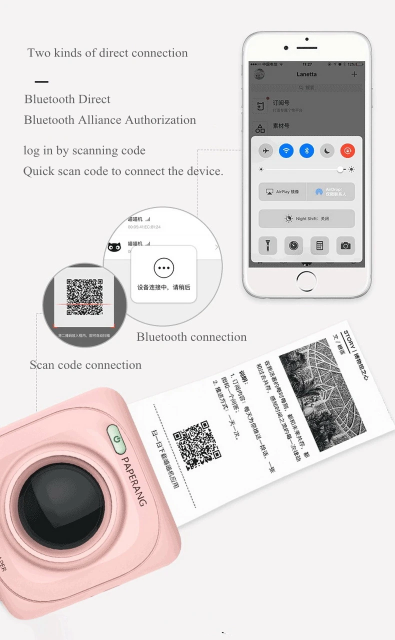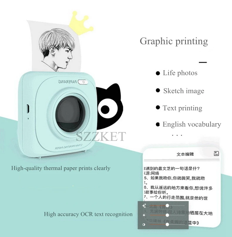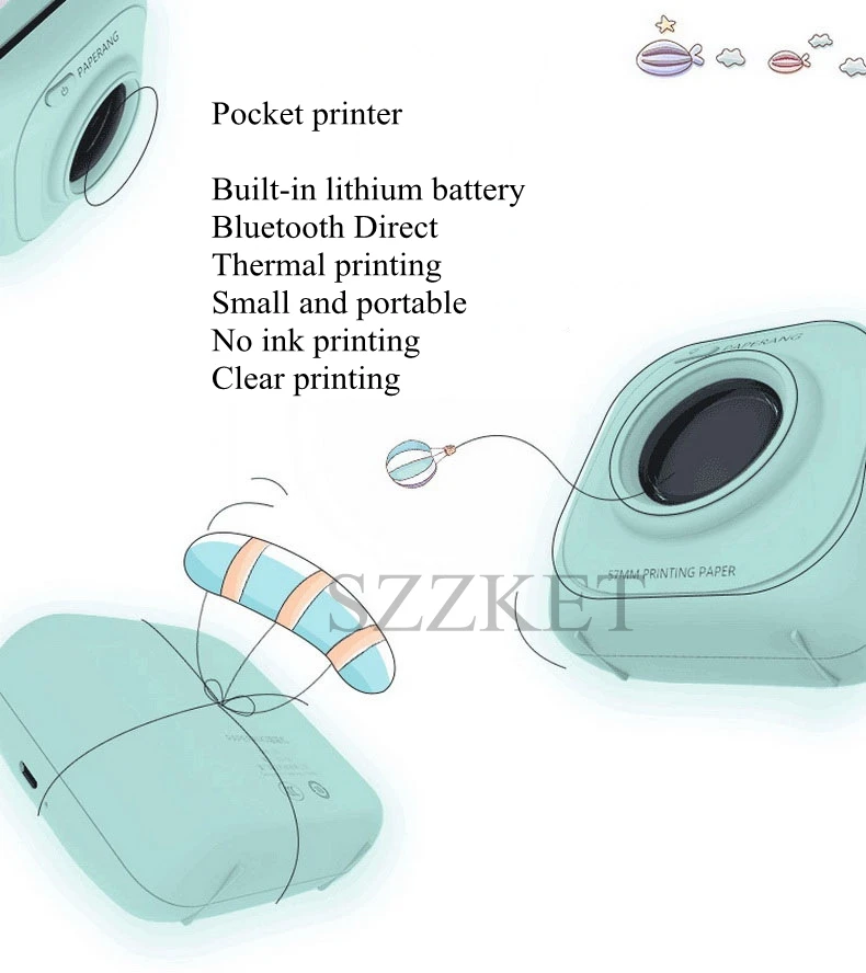 For PAPERANG Portable thermal printer A variety of specifications stickers printer Pocket photo printer Built-in battery