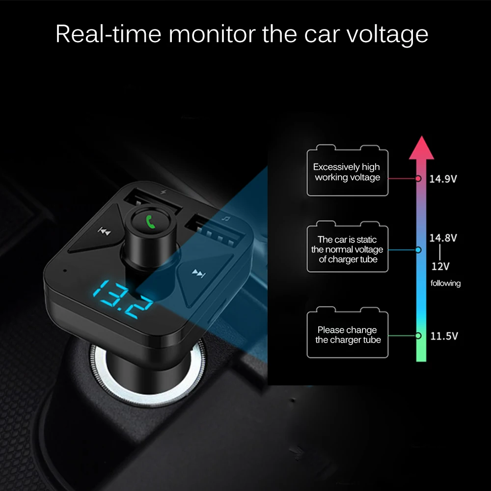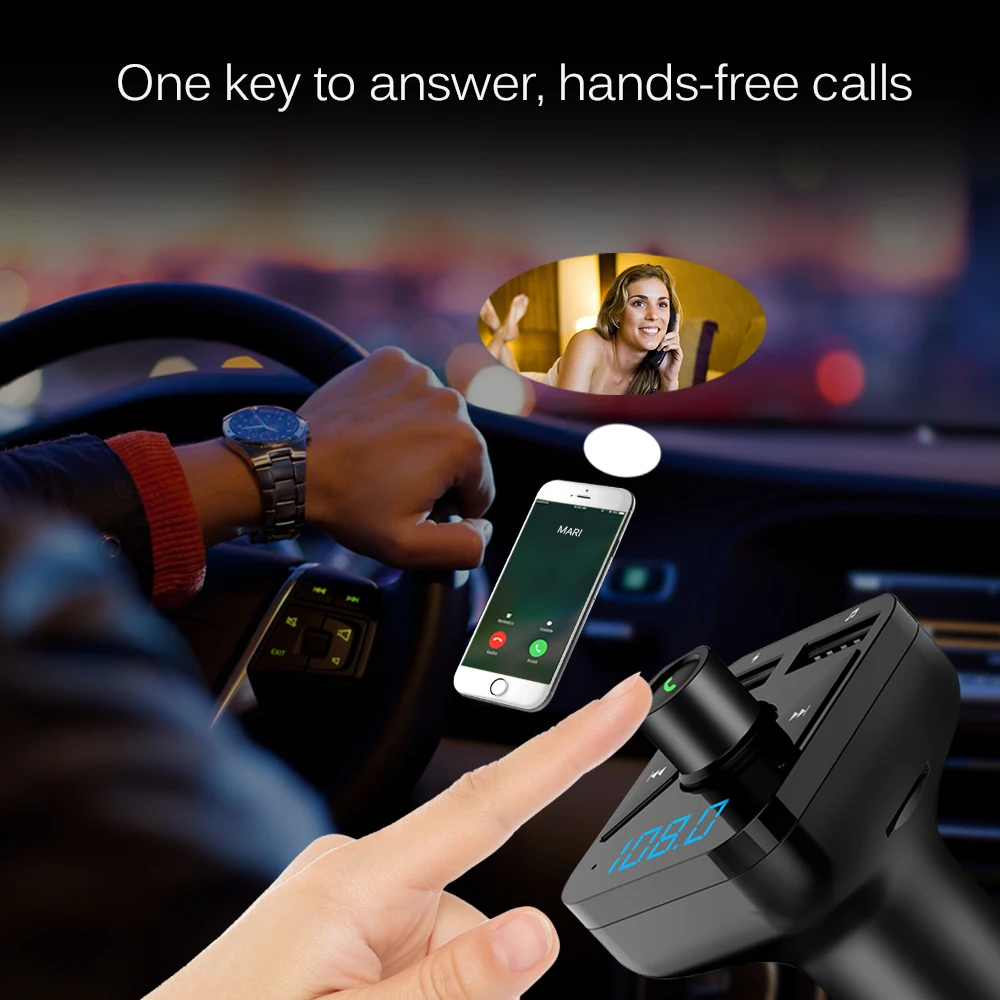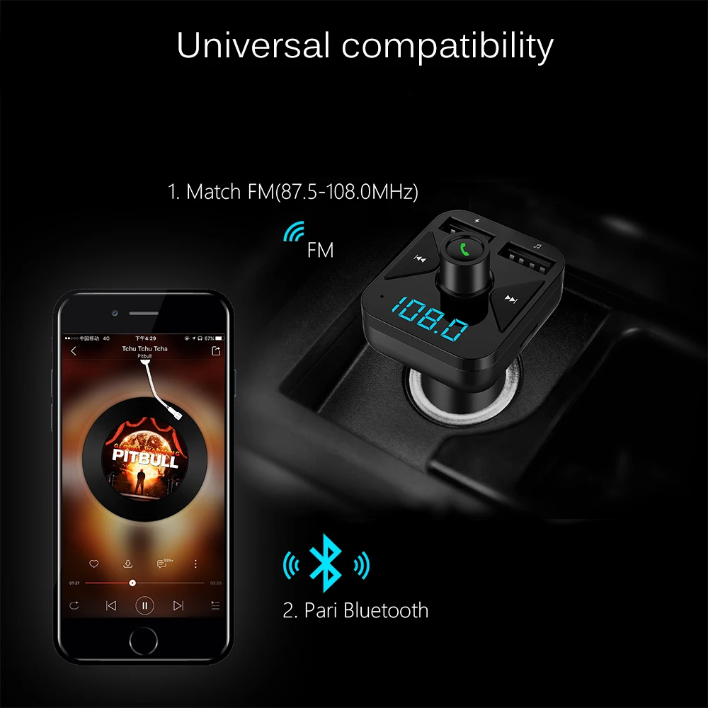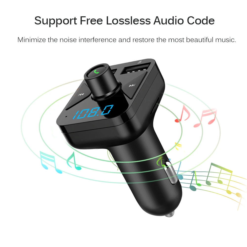 This car Bluetooth FM transmitter lets you enjoy your phone music when driving and plays a louder and clearer phone navigation voice on car stereo.