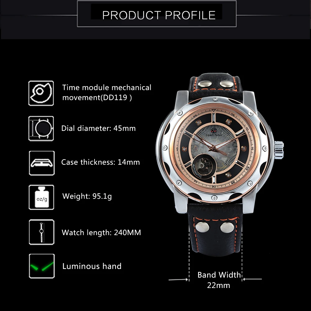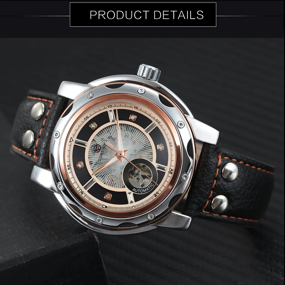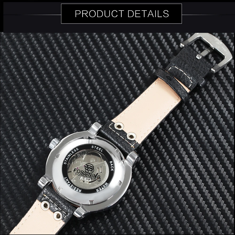 FORSINING Unique Fashion Automatic Men Watches Leather Band Luminous Hands Skeleton Dial Top Brand Luxury Mechanical Wrist Watch
