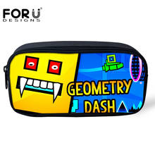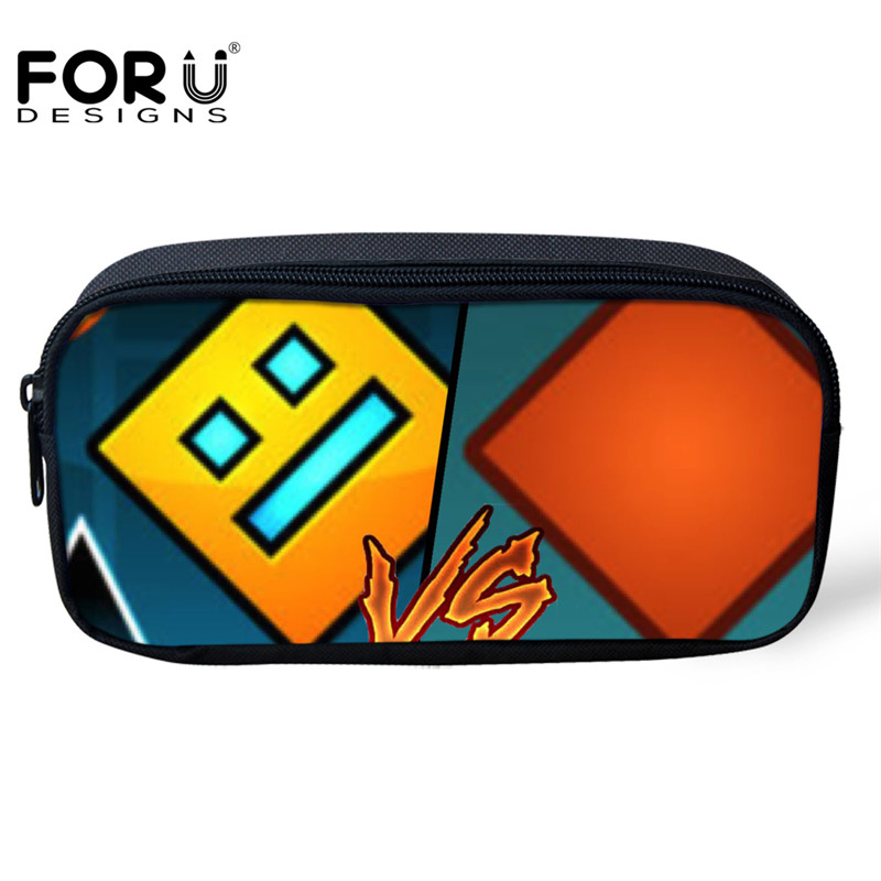 FORUDESIGNS Cartoon Pencil Case Kids Boys Geometry Dash 3D Pattern Pencil Pouch Fashion Women’s Cosmetic Cases Students Pen Bags