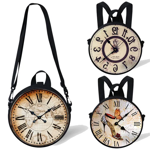 ALICE Cosplay Clock Bag Mini Girl Boy Round Bag Retro Clock Print Women Shoulder Sac